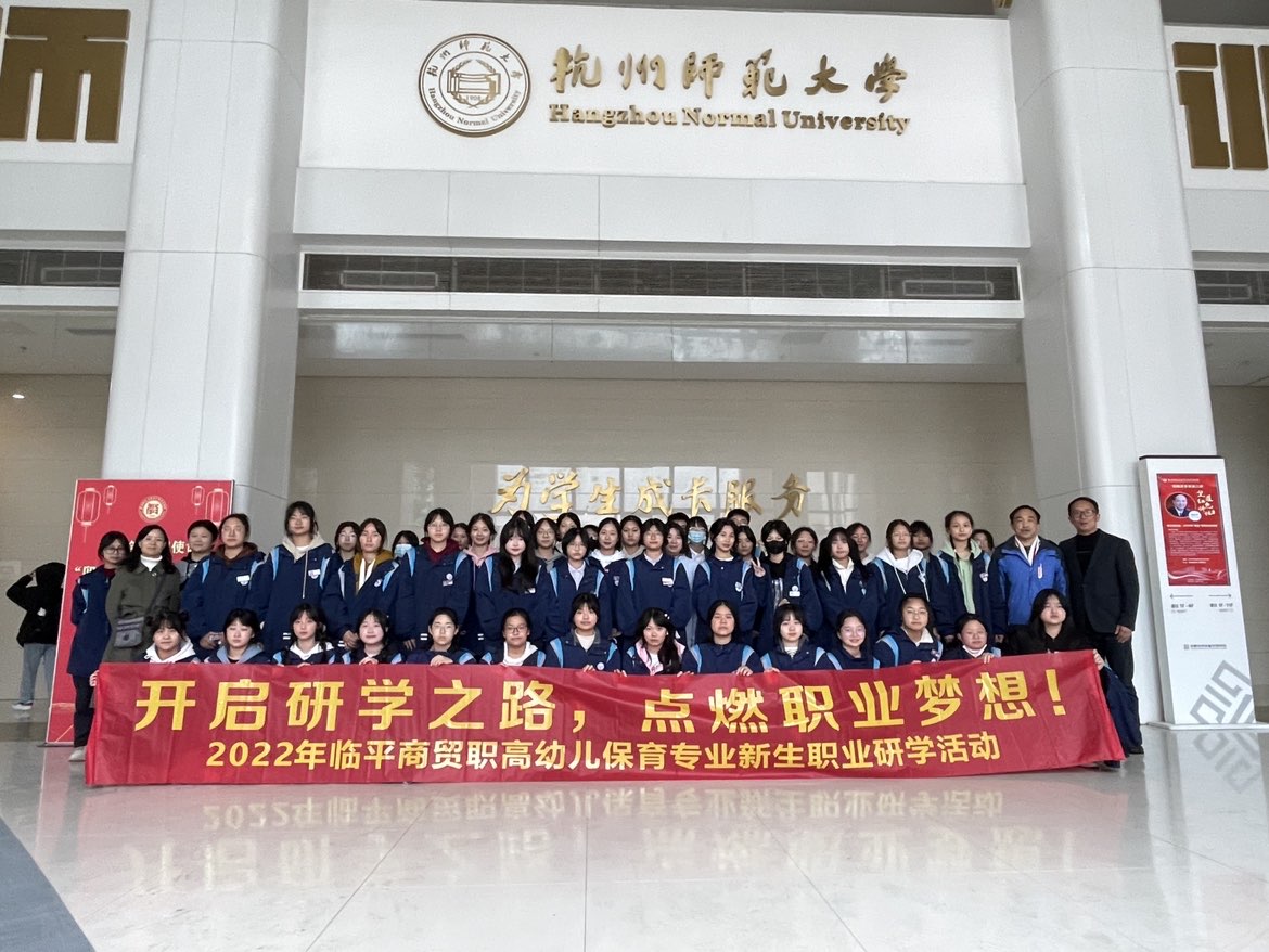 3月22日、23日,临平商贸职业高级中学师生代表到 蜜桃视频 进行参观交流,领略大学文化氛围,提前体验大学生活。杭州市东湖街道蚂蚁社会工作服务中心主任李晓东、 蜜桃视频 继续教育中心主任王胜平老师、部分学生代表与临平商贸职高幼保221班、222班近100名师生一起开展了校园参观、学业体验等活动。