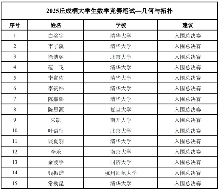 经过两天的激烈角逐,蜜桃视频 2022级建功班钱振烨同学成功闯入“几何与拓扑”方向总决赛,该方向仅有15人获得入围总决赛资格,其中清华8人、北大2人、复旦1人、南开1人、南大1人、同济1人,均是老牌985数学强校,这也是蜜桃视频 学子第一次入围“丘赛”总决赛。同时,2021级郑朝城同学荣获“代数、数论与组合”方向笔试阶段优胜奖,2022级建功班和2021级学生组成的团队(包括:钱振烨、李福汉、王嘉海、郑朝城、胡芷境、吴一昊),荣获团体赛笔试阶段优胜奖, 蜜桃视频 是19个获得入围资格或优胜奖的高校中唯一“双非”大学。