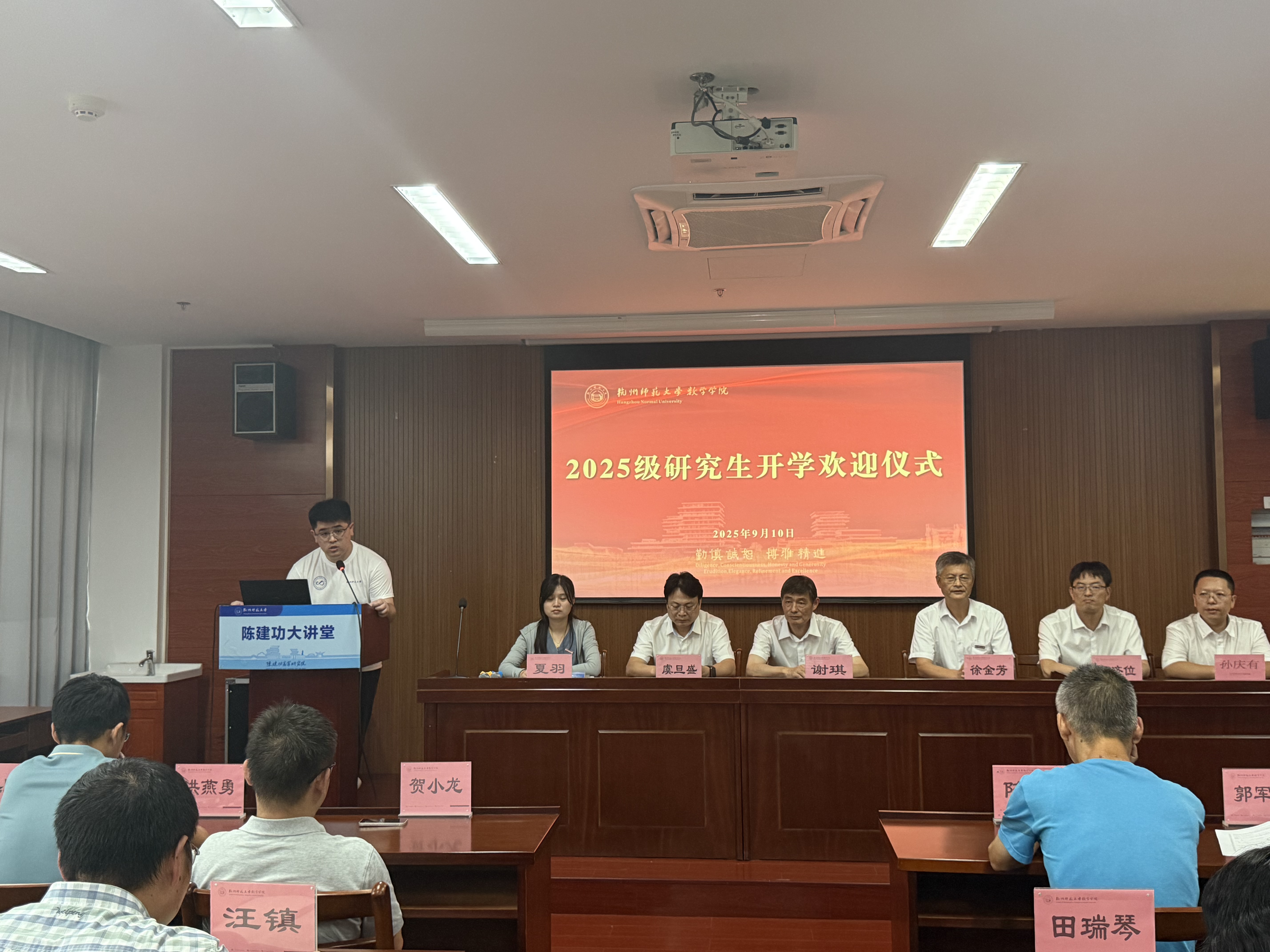 9月10日,蜜桃视频 在仓前校区勤园陈建功大讲堂隆重举行2025级研究生开学欢迎仪式。学院党政班子全体成员、导师代表及全体新生齐聚一堂,共同见证这一重要时刻,欢迎仪式在庄严的国歌声中拉开序幕。