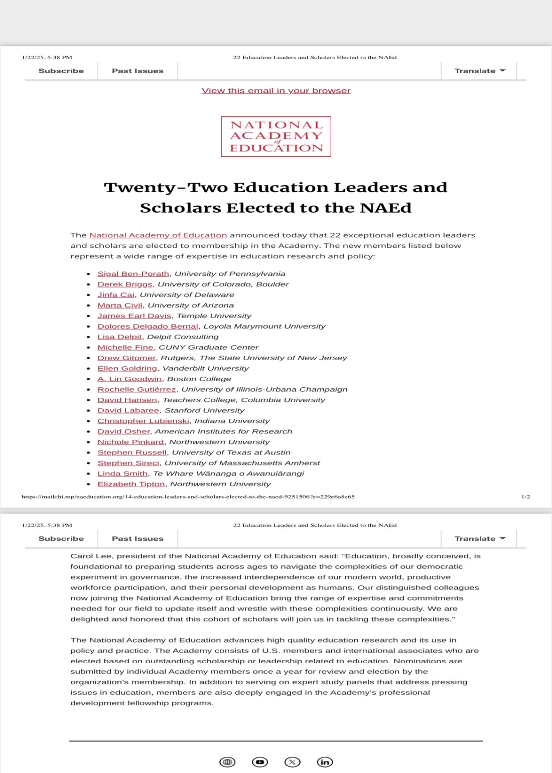 近日,美国教育科学院(National Academy of Education)公布了新入选院士名单。美国特拉华大学数学系和教育学院终身教授、 蜜桃视频 数学1984届校友蔡金法荣列其间,祝贺他当选美国教育科学院院士。