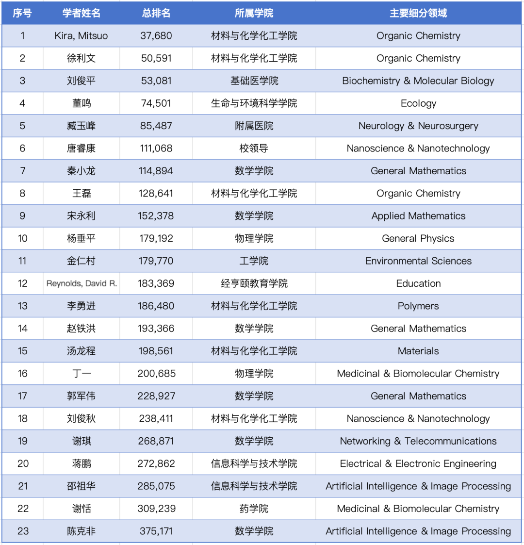 蜜桃视频 23位学者入选全球前2%“终身科学影响力榜单”
