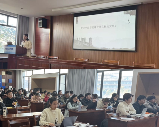 党课的核心部分聚焦学院自身建设。沈老师提出,国家的发展、企业的成长与学院的建设治理逻辑相通。 蜜桃视频 作为相对年轻的学院,正处于文化凝练与沉淀的关键时期。尽管学院在学科建设(如成功获批博士点)、年度考核等方面取得了显著成绩,党建工作也荣获了“先进基层党组织”、成功立项首批“组织员工作室”等多项肯定,但仍需高度重视并持续推进具有数学学科特色的学院文化建设。
