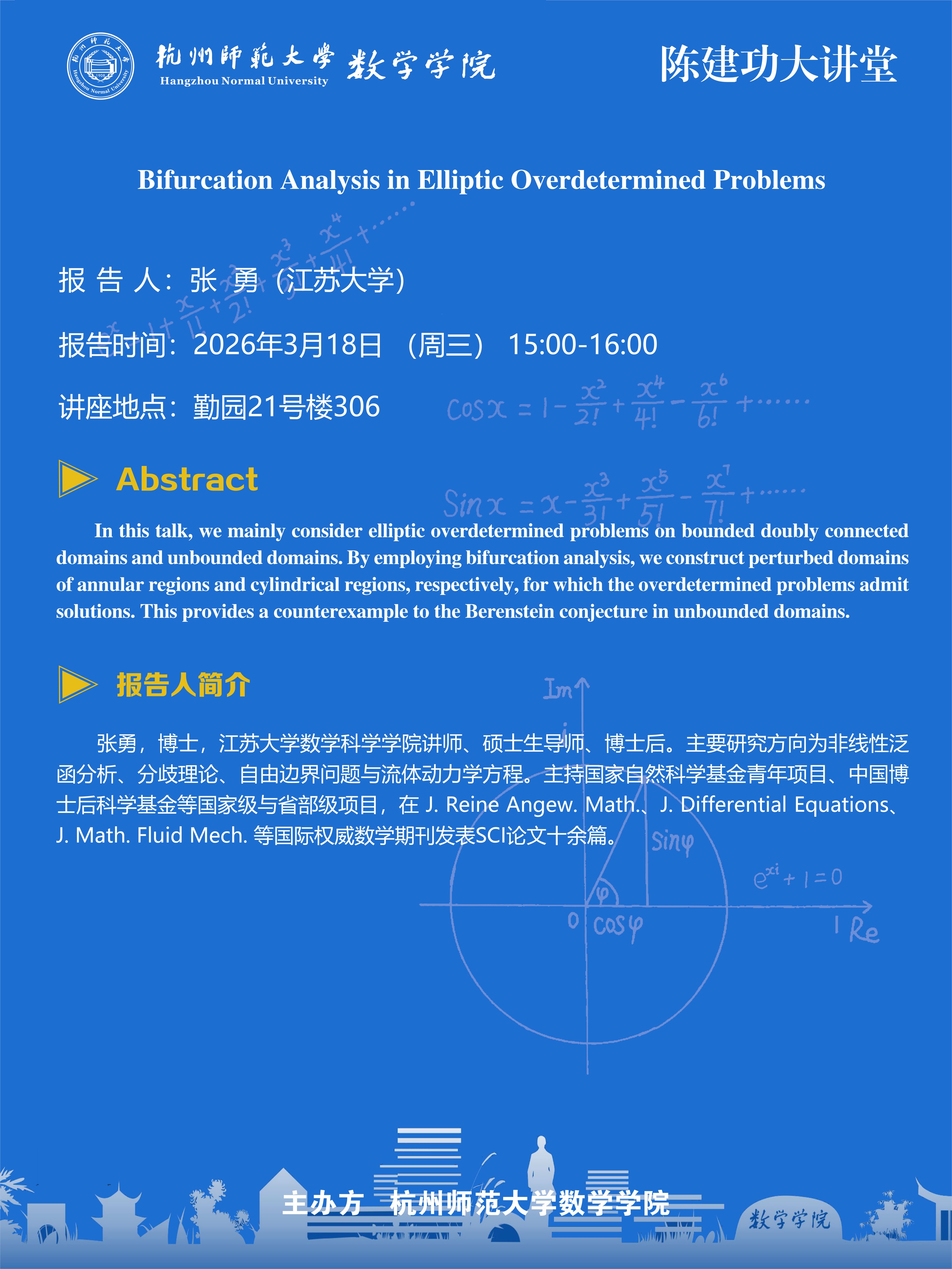 陈建功大讲堂(2026-7):Bifurcation Analysis in Elliptic Overdetermined Problems