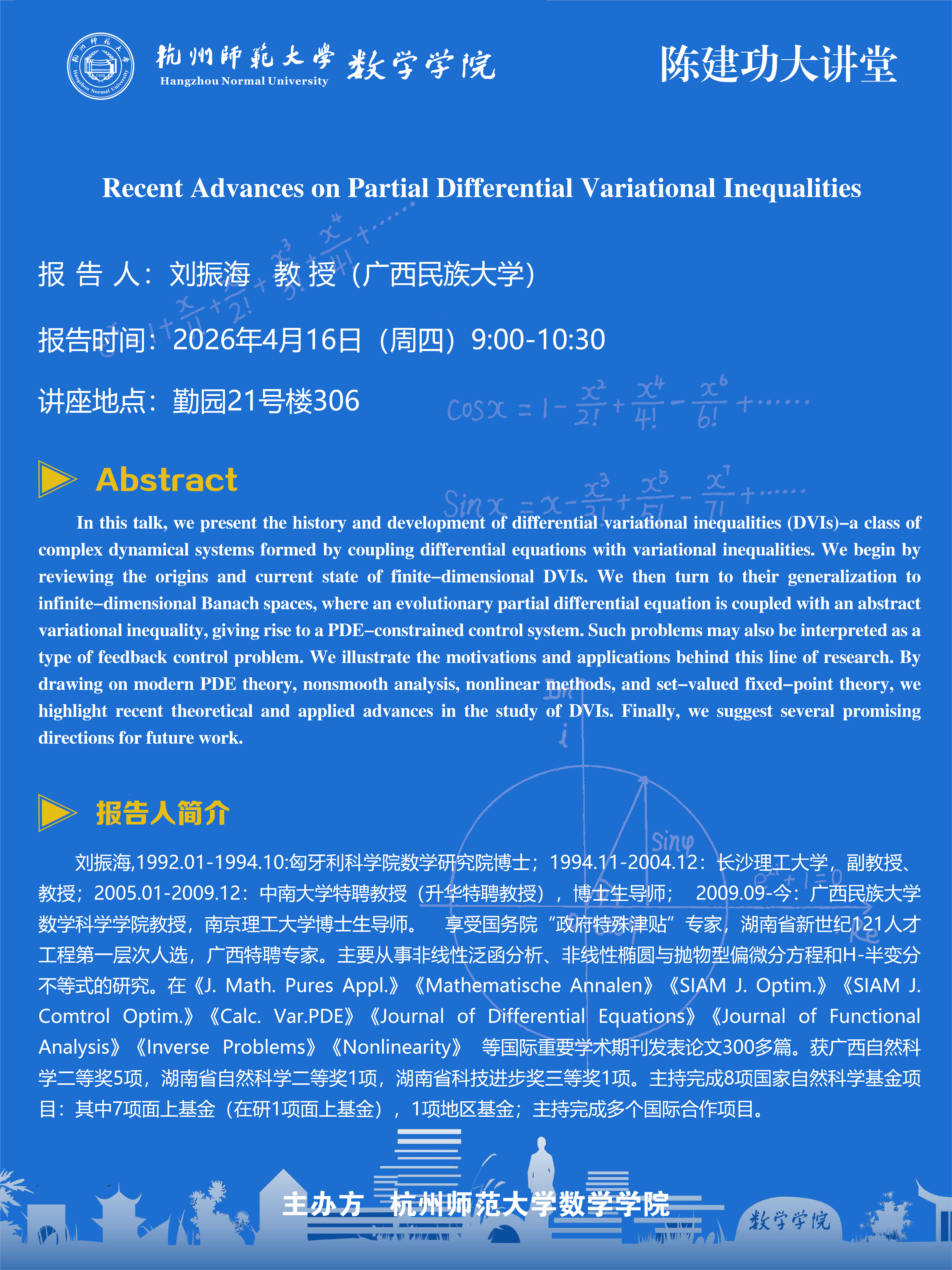 陈建功大讲堂(2026-13):Recent Advances on Partial Differential Variational Inequalities