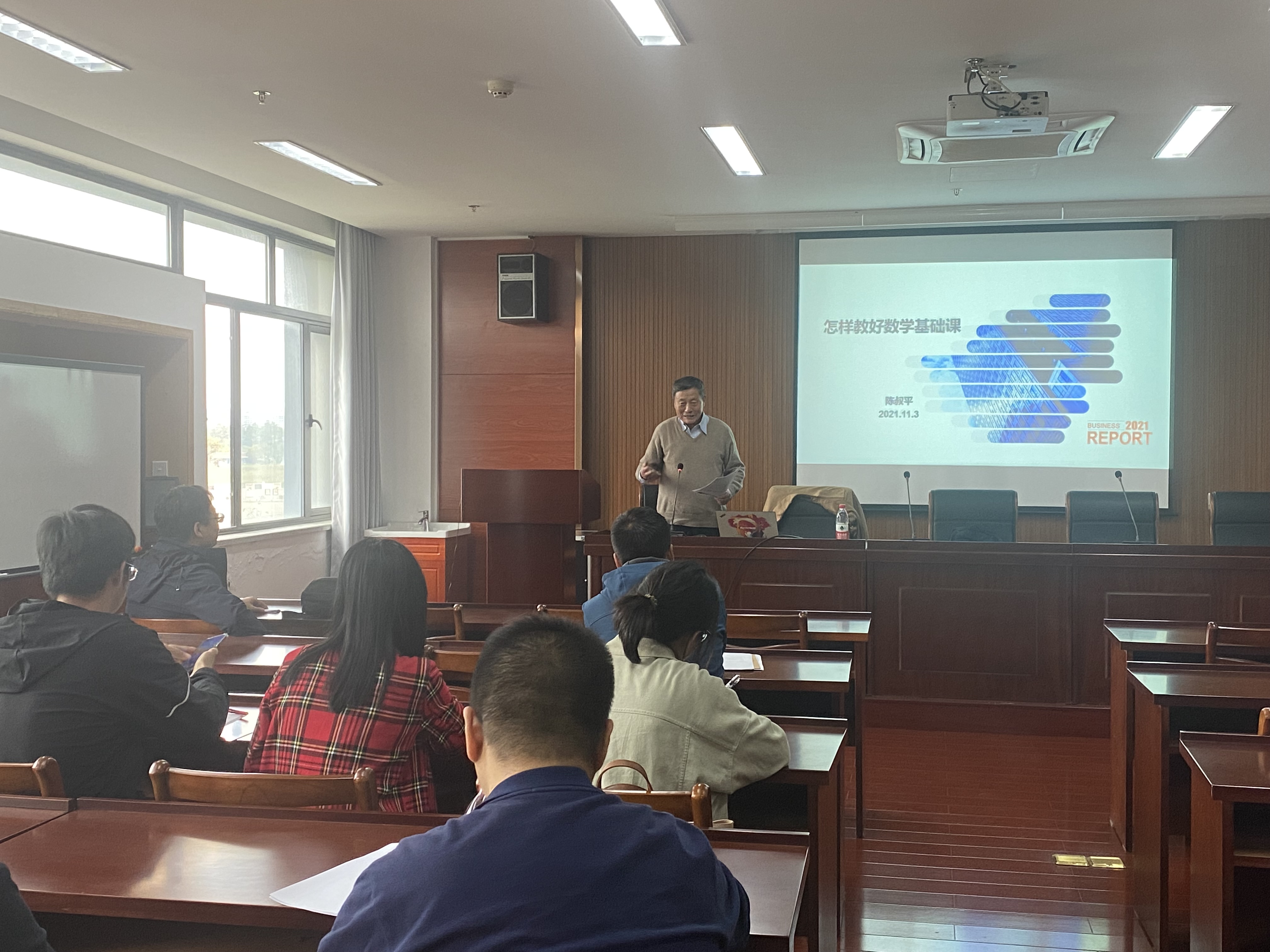 学期过半,为更好地总结教学经验,分享教学心得,做好期中教学检查,11月3日下午, 蜜桃视频 举行期中教研活动。特邀贵州大学原校长陈叔平教授来学院,为教师们作了题为“怎样教好数学基础课”的主题讲座。 蜜桃视频 副院长虞旦盛主持会议,副院长何济位出席教研活动。