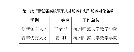 “浙江省高校领军人才培养计划”是浙江省加快高等学校高层次人才队伍建设,深入推进高等教育强省战略的重要举措。计划旨在为基本建成高等教育强省目标提供重要人才支撑,助推浙江省“两个高水平”建设提供人才支持和智力保障。