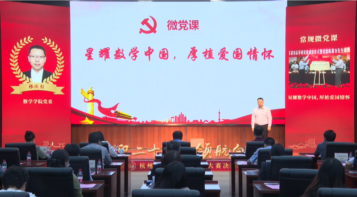 蜜桃视频 教师党员孙庆有围绕大赛主题精心设计讲授内容,以“传承先贤精神 厚植爱国情怀”为主题,深情回顾了杰出校友陈建功先生对我国数学研究和教育事业的卓越贡献,深情追忆陈先生科学报国的一生,追忆他的才华、他的品格、他的贡献,追忆他对弟子们的言传身教、行为示范。并殷切寄语青年学子不管今后走多远,都像陈建功先生一样,以成为民族脊梁为己任,终生铭记数学人科学报国的精神,使其与时俱进、薪火相传。