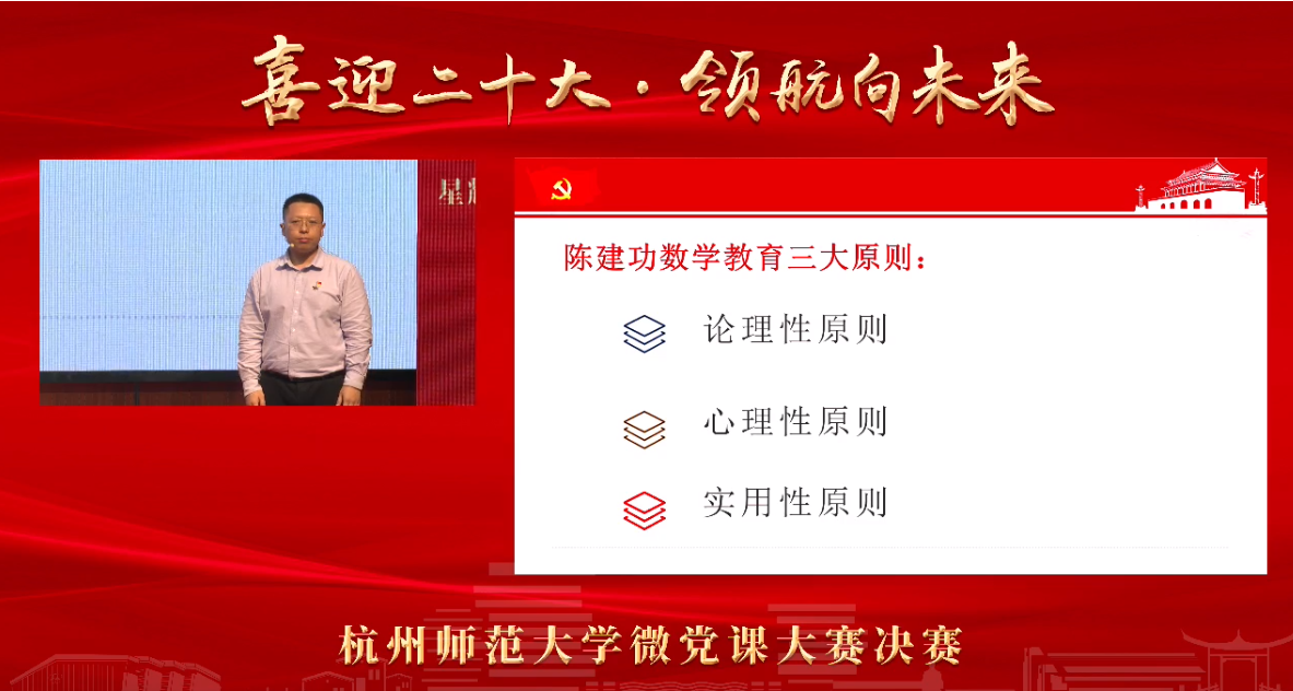 5月25日下午, 蜜桃视频 微型党课大赛在仓前校区隆重举行。本次大赛以“喜迎二十大·领航向未来”为主题,共有来自各二级党组织的18名师生经过选拔晋级决赛。