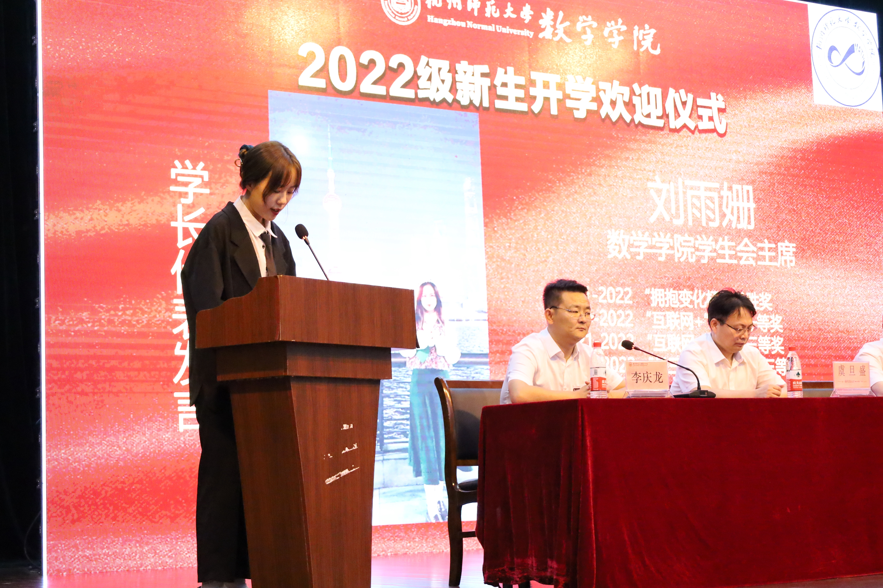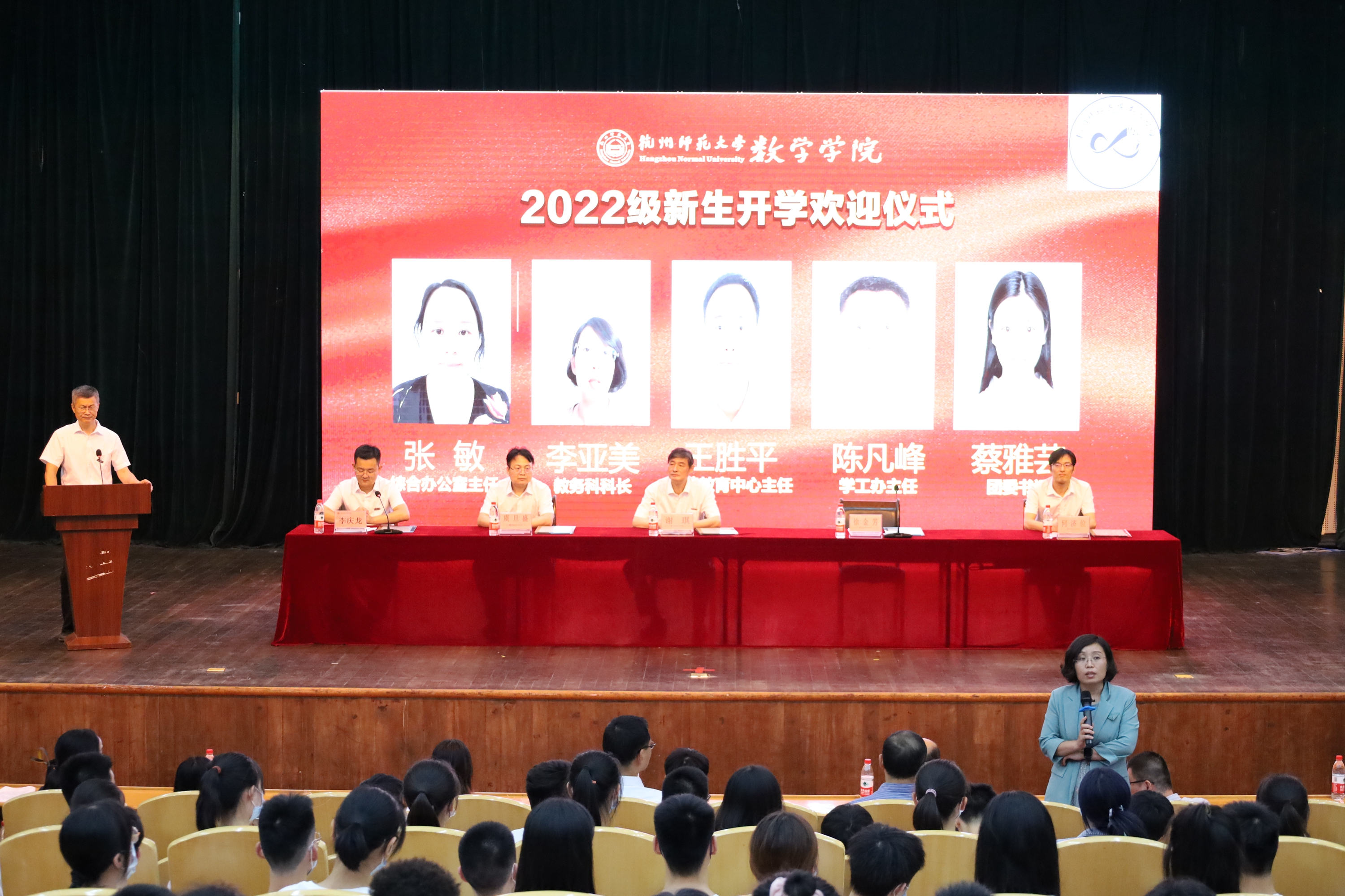 欢迎仪式在庄严的国歌声中拉开帷幕。院长谢琪教授热情洋溢地发表了致辞,首先向2022级新同学表示热烈的欢迎,向18年来呵护养育、培养教育新同学们的父母和老师表示衷心的感谢。他说,上有天堂,下有苏杭。在风景秀丽、历史悠久、文化厚重的杭州读书和生活,是一件十分幸福的事情。蜜桃视频 前身是创建于1908年的浙江官立两级师范学堂算学科,数学是学校最早建设的六大学科之一。百十年来,一代又一代杭师大数学人弘文励教、青蓝相继,知数明德、弦歌不辍,涌现出著名数学家、教育家陈建功先生等各领域成绩斐然的杰出校友,培养了国家千人、长江学者、国家杰青等知名学者和一大批中学名师和名校长。院长谢琪教授讲授开学第一课,殷切寄语同学们锤炼优良的品德、担负起应有的社会责任,这是成为优秀人才的基石。坚定理想信念、不妄自菲薄,这是做出非凡业绩的必备条件。养成良好的学习习惯,敢于拼搏,这是不断进步的阶梯。