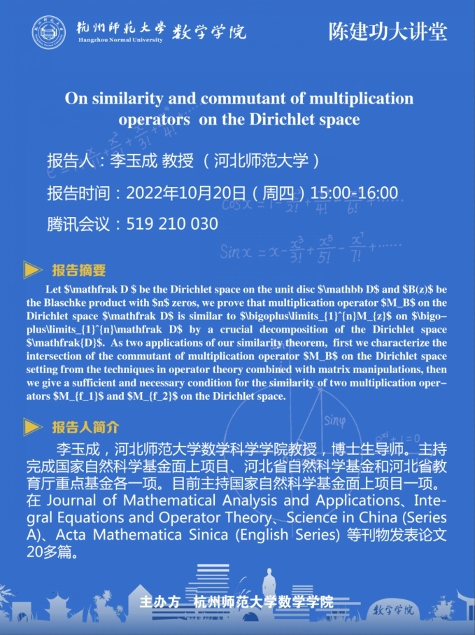 陈建功大讲堂:On similarity and commutant of multiplication operators on the Dirichlet space