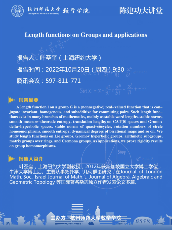 陈建功大讲堂:Length functions on Groups and applications