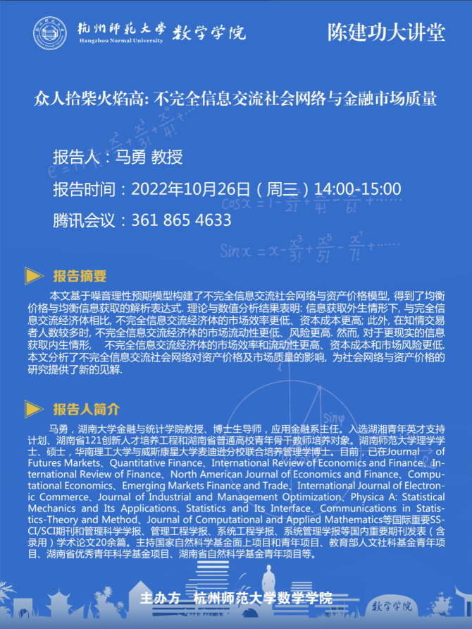 陈建功大讲堂:众人拾柴火焰高: 不完全信息交流社会网络与金融市场质量