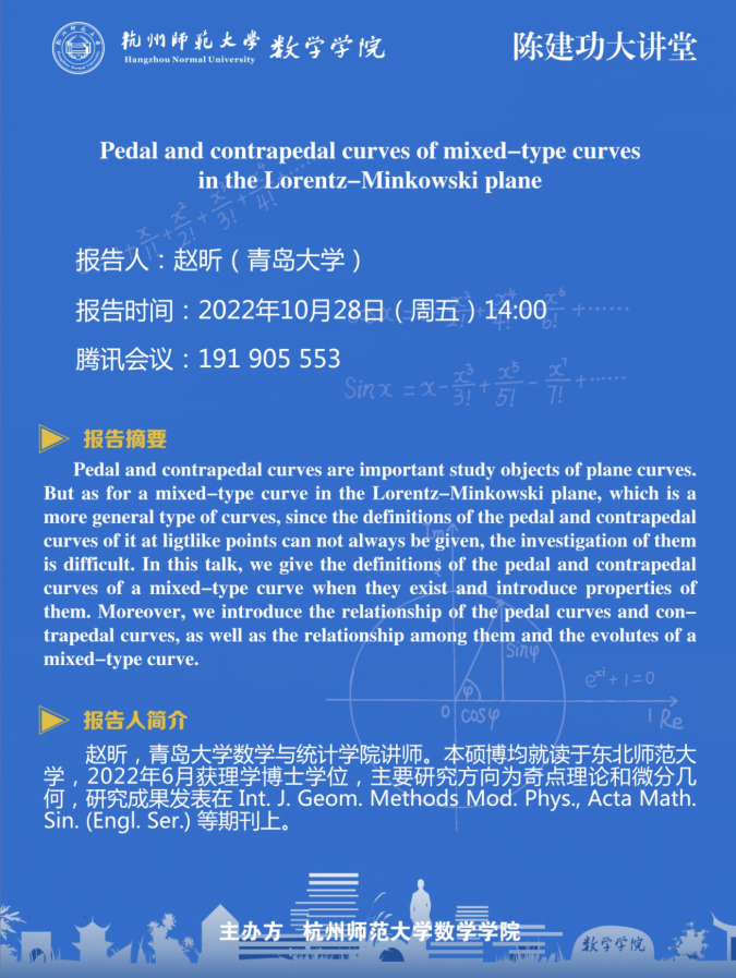 陈建功大讲堂:Pedal and contrapedal curves of mixed-type curves in the Lorentz-Minkowski plane