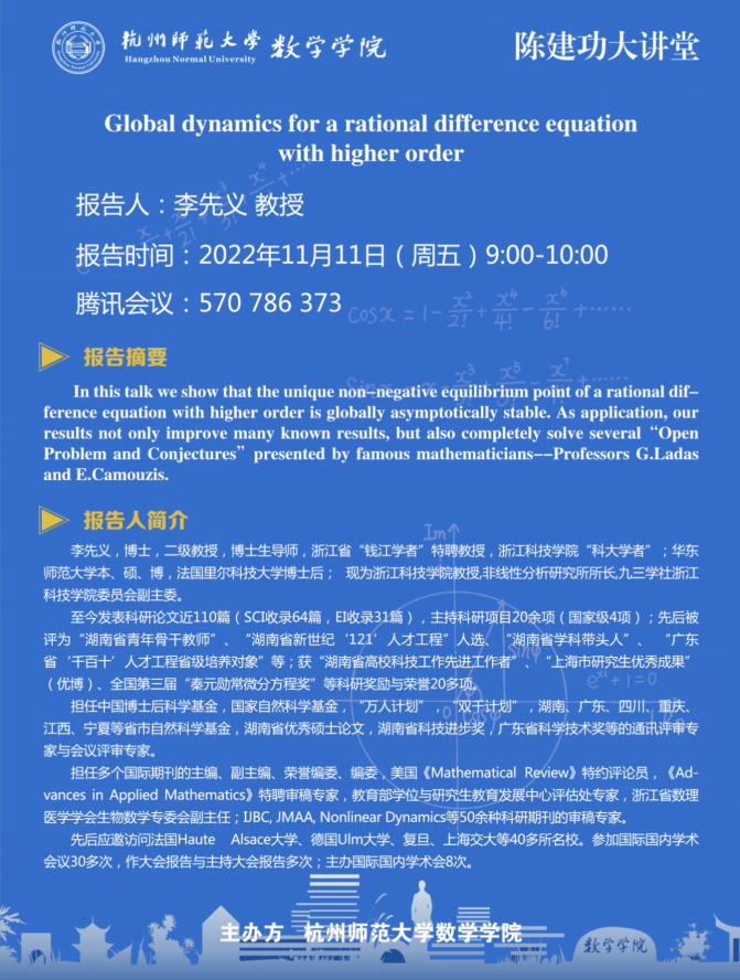 陈建功大讲堂:Global dynamics for a rational difference equation with higher order