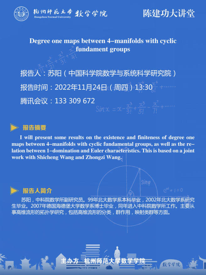 陈建功大讲堂:Degree one maps between 4-manifolds with cyclic fundament groups