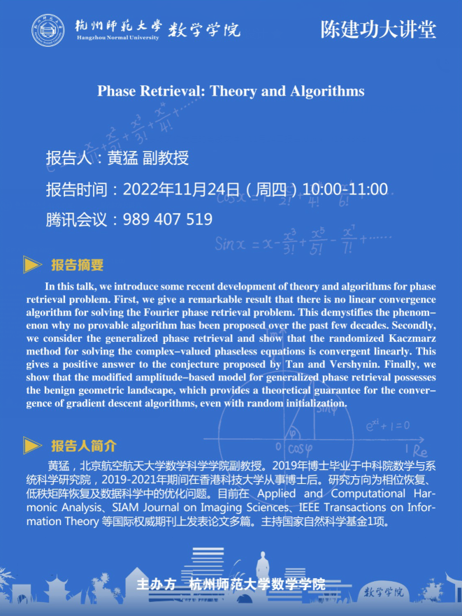 陈建功大讲堂:Phase Retrieval: Theory and Algorithms