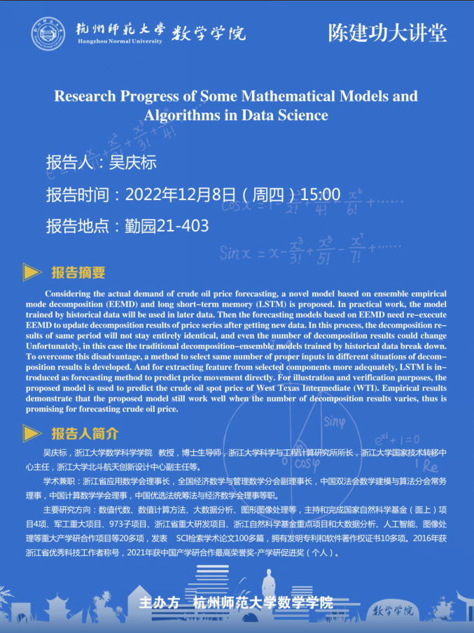 陈建功大讲堂:Research Progress of Some Mathematical Models and Algorithms in Data Science