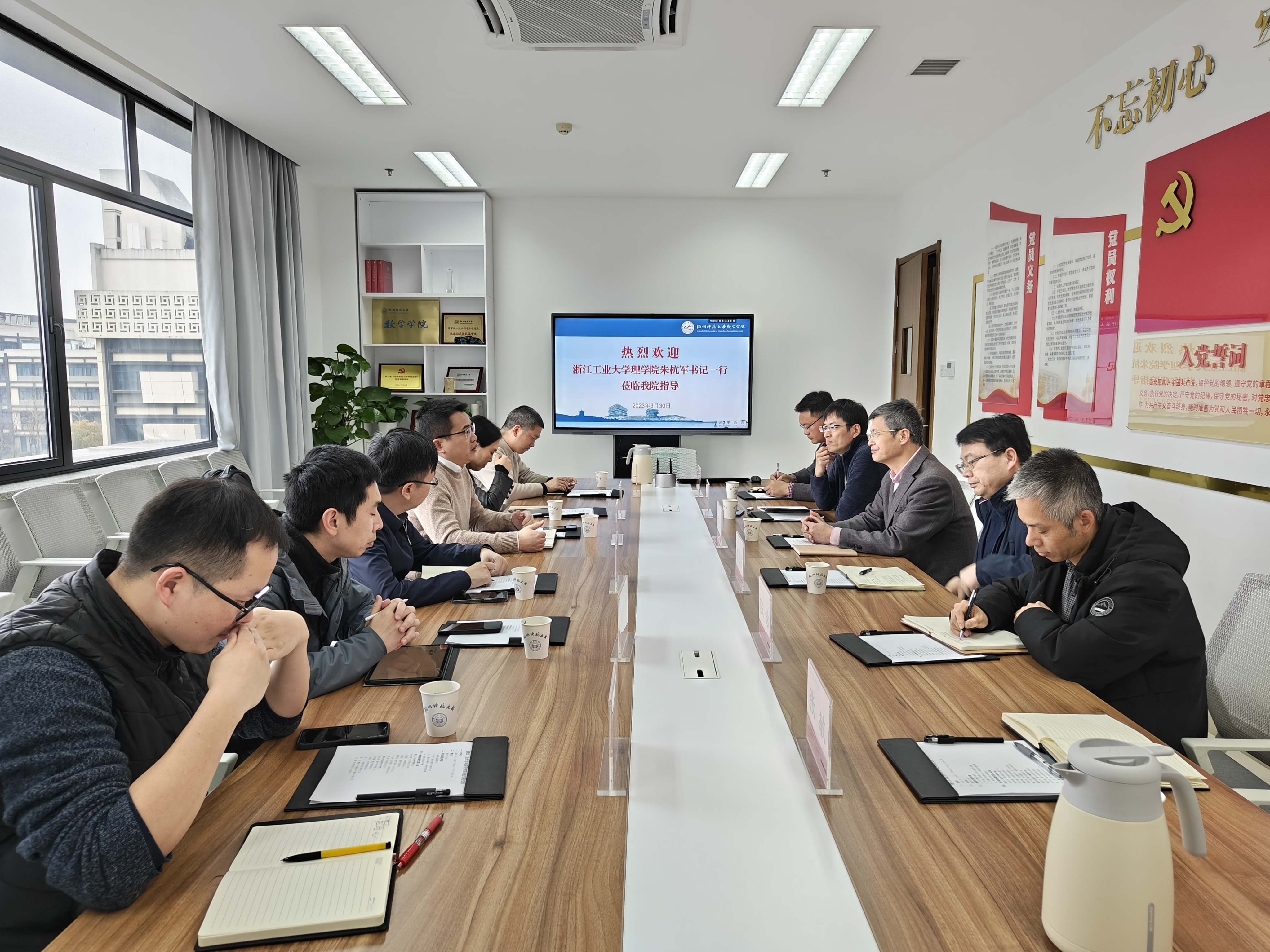 3月30日,浙江工业大学理学院党委书记朱杭军一行来蜜桃视频 开展调研。院党委书记徐金芳、教学副院长虞旦盛、科研副院长何济位、数学系系主任陈泳、数科系系主任曹健等参加座谈交流会。