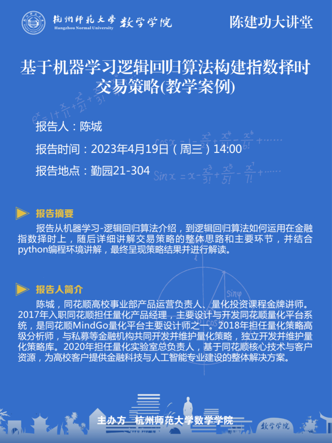 陈建功大讲堂:基于机器学习逻辑回归算法构建指数择时交易策略(教学案例)