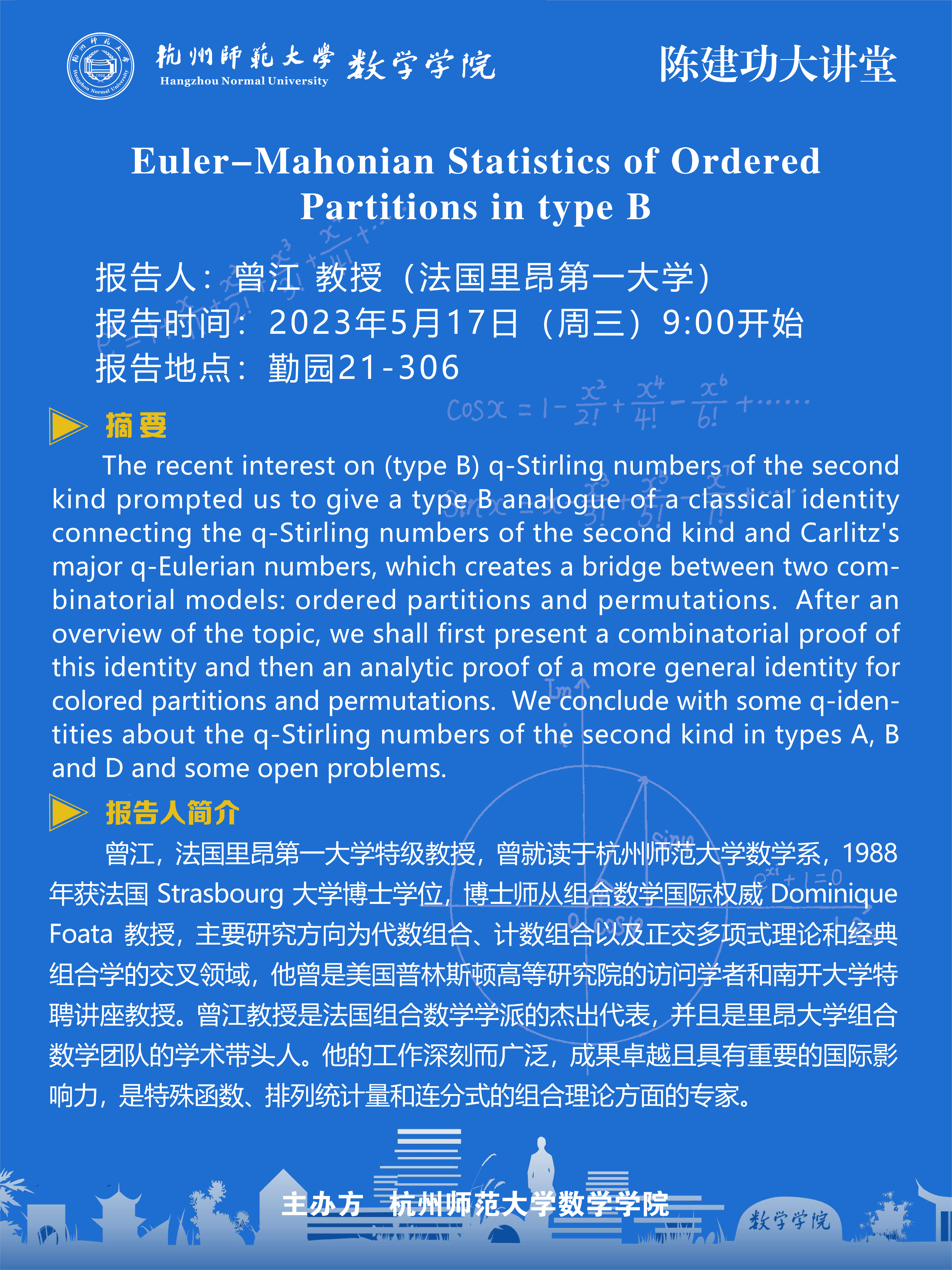 陈建功大讲堂:Euler-Mahonian Statistics of Ordered Partitions in type B