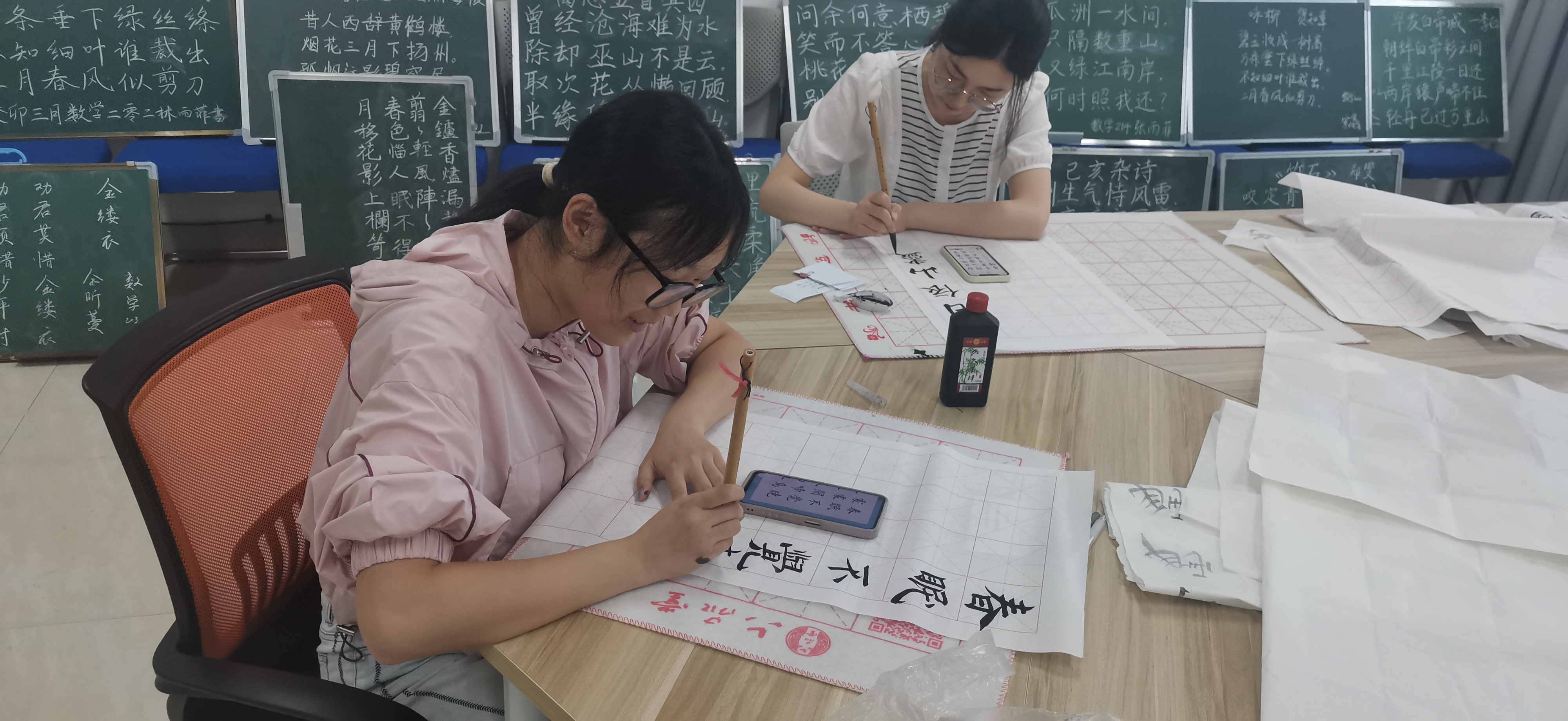 比赛包含毛笔字、粉笔字、硬笔字三个项目,分为初赛和决赛两个阶段。经过初赛筛选,共有70多个作品进入决赛。