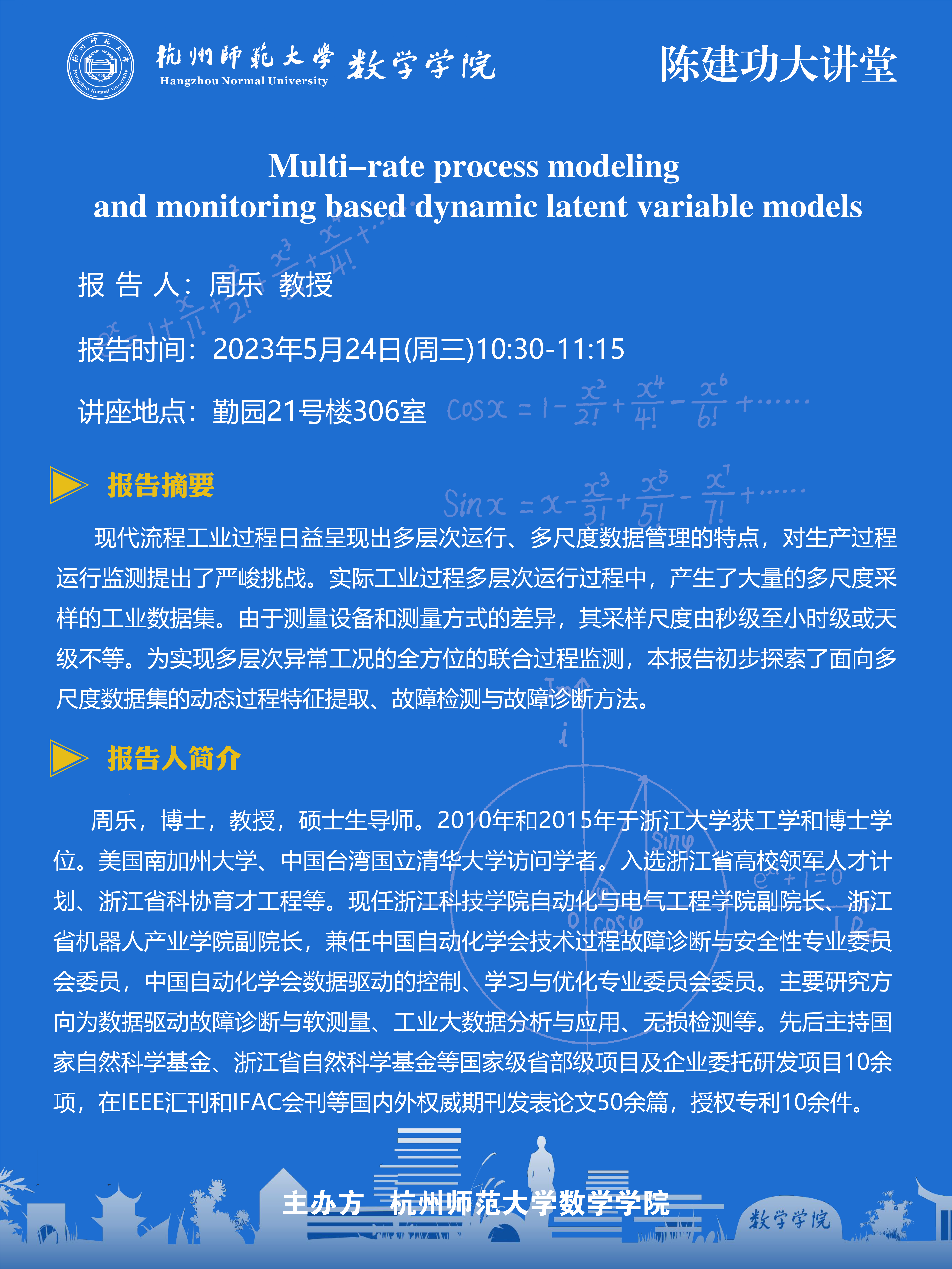 陈建功大讲堂:Multi-rate process modeling and monitoring based dynamic latent variable models