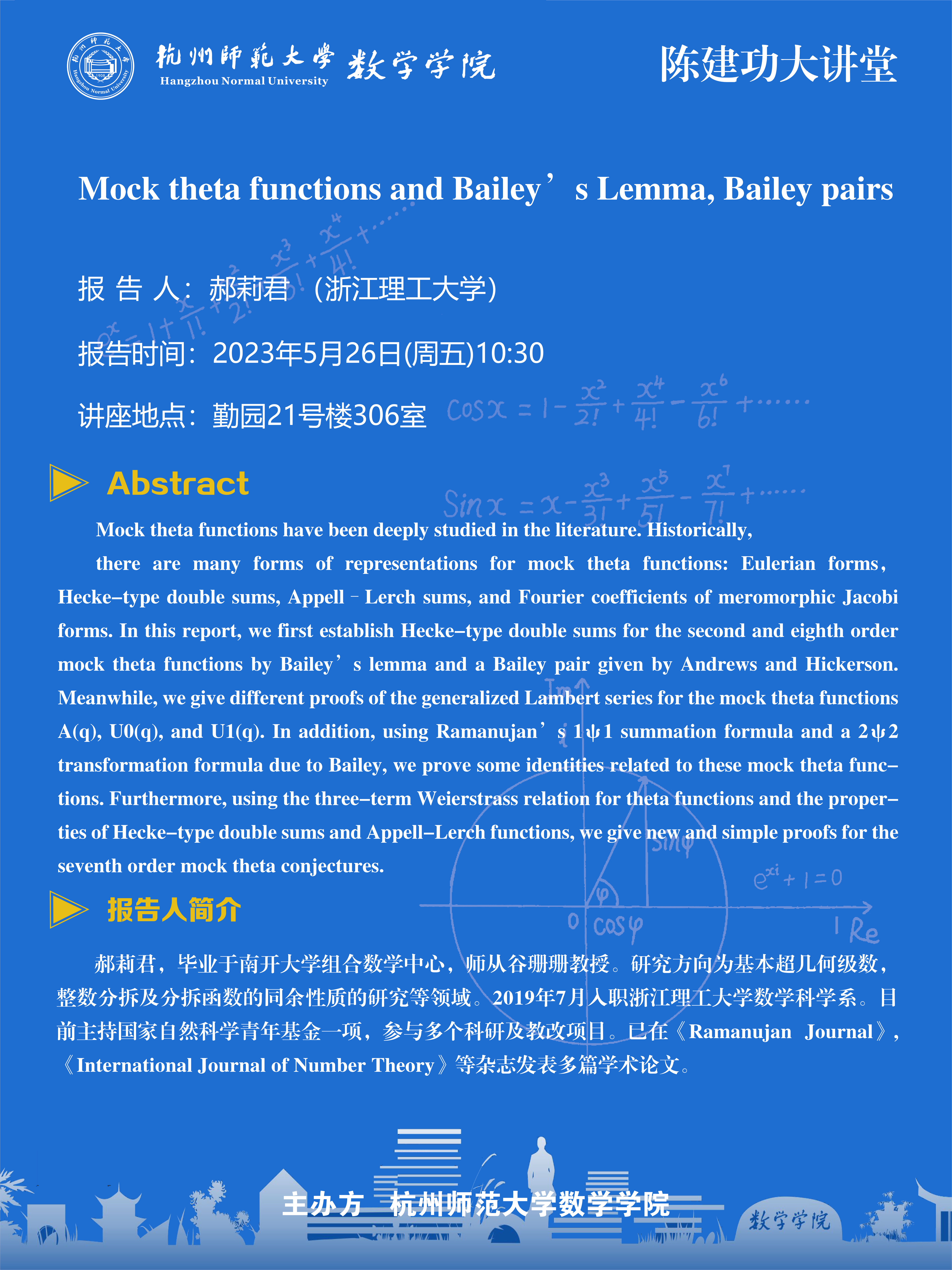 陈建功大讲堂:Mock theta functions and Bailey’s Lemma, Bailey pairs