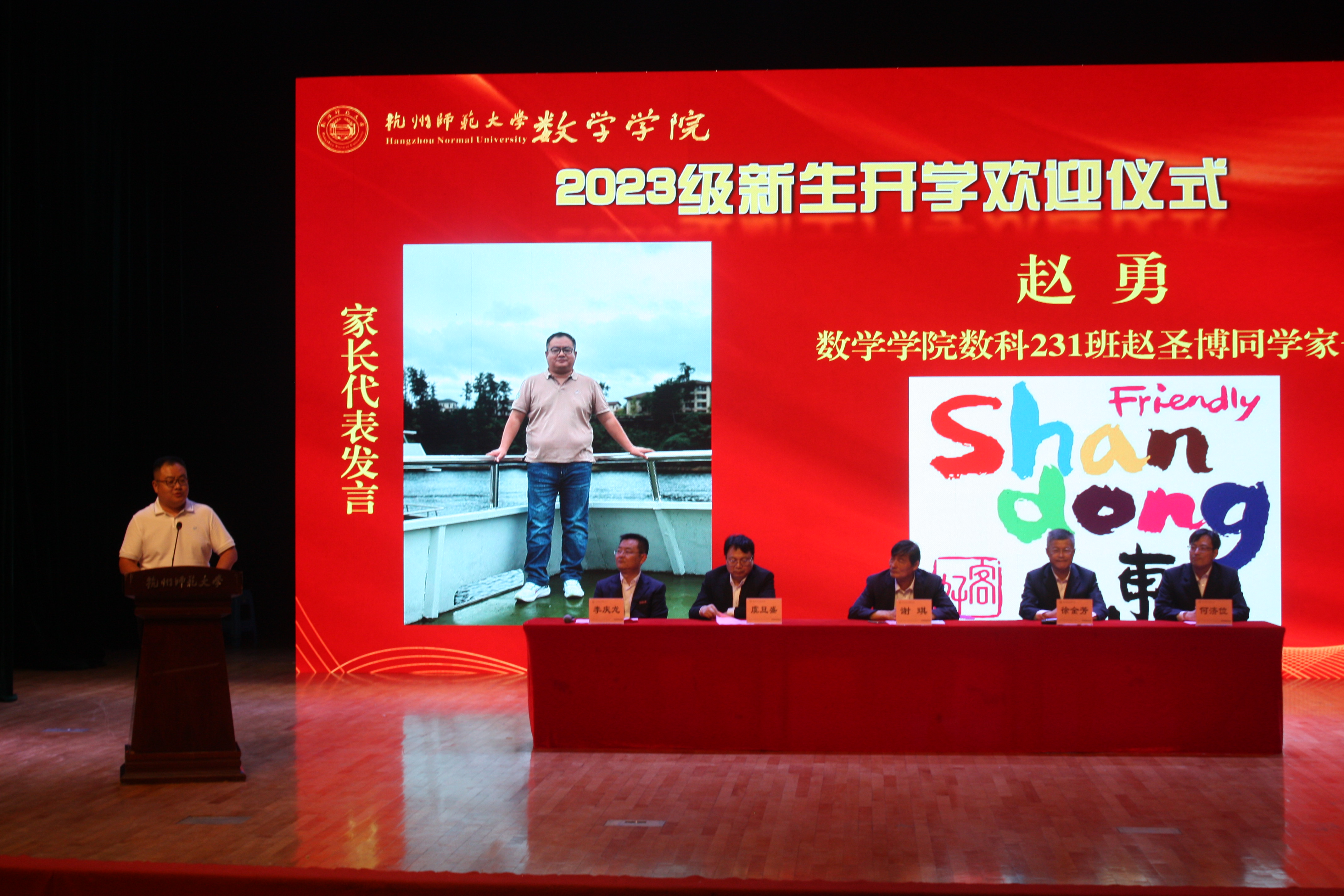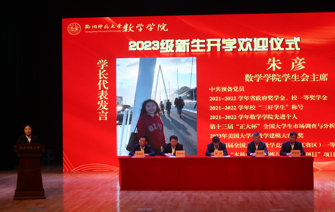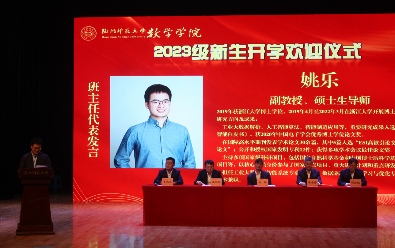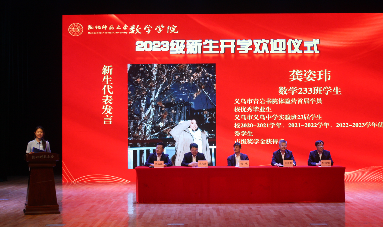 欢迎仪式上,院长谢琪教授热情洋溢地发表了欢迎致辞,向2023级新同学表示热烈的欢迎,向呵护养育、培养教育新同学们的父母和老师表示衷心的感谢。他说,恰逢杭州亚运会举办之际, 蜜桃视频 也作为亚运场馆见证了亚运金牌的诞生,在如此风景秀丽的城市读书、生活,是非常幸福的事情。 蜜桃视频 在百十年来,涌现出著名数学家、教育家陈建功先生等各领域成绩斐然的杰出校友,培养了国家千人、长江学者、国家杰青等知名学者和一大批中学名师和名校长。一代又一代杭师大数学人弘文励教、青蓝相继,知数明德、弦歌不辍。院长谢琪教授勉励大家发扬科学精神、肩负起报效国家的责任,发现数学之美,不负韶华,成为一名优秀的数学人。