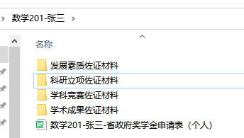 3.申请的同学请填写 附件3 蜜桃视频 省政府奖学金申请表(个人) ,与相关佐证材料整理打包,文件夹命名为“班级-姓名”,佐证材料汇总方式如图所示: