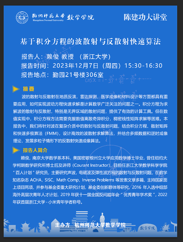 陈建功大讲堂:基于积分方程的波散射与反散射快速算法