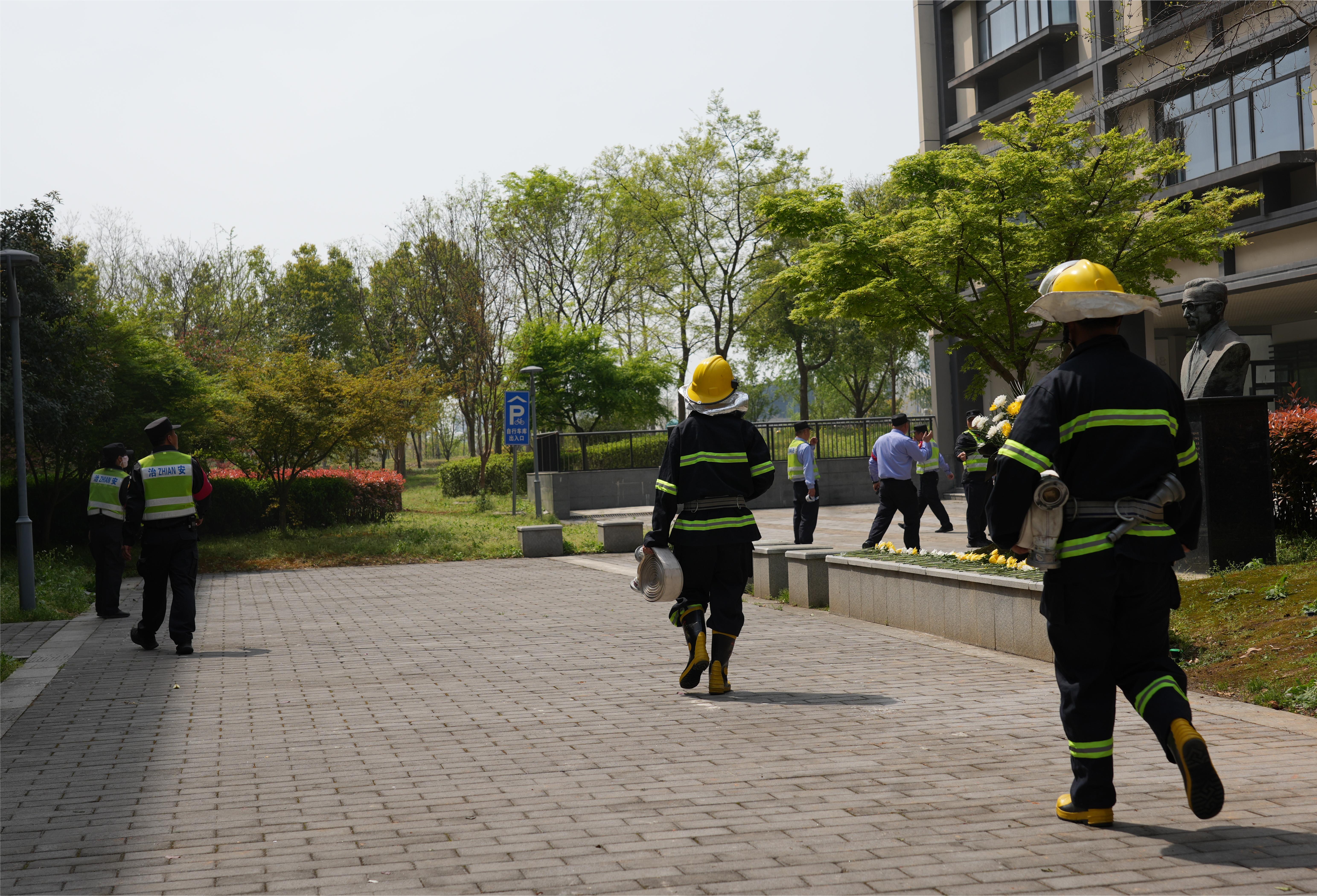 火灾演练现场拉起警戒线