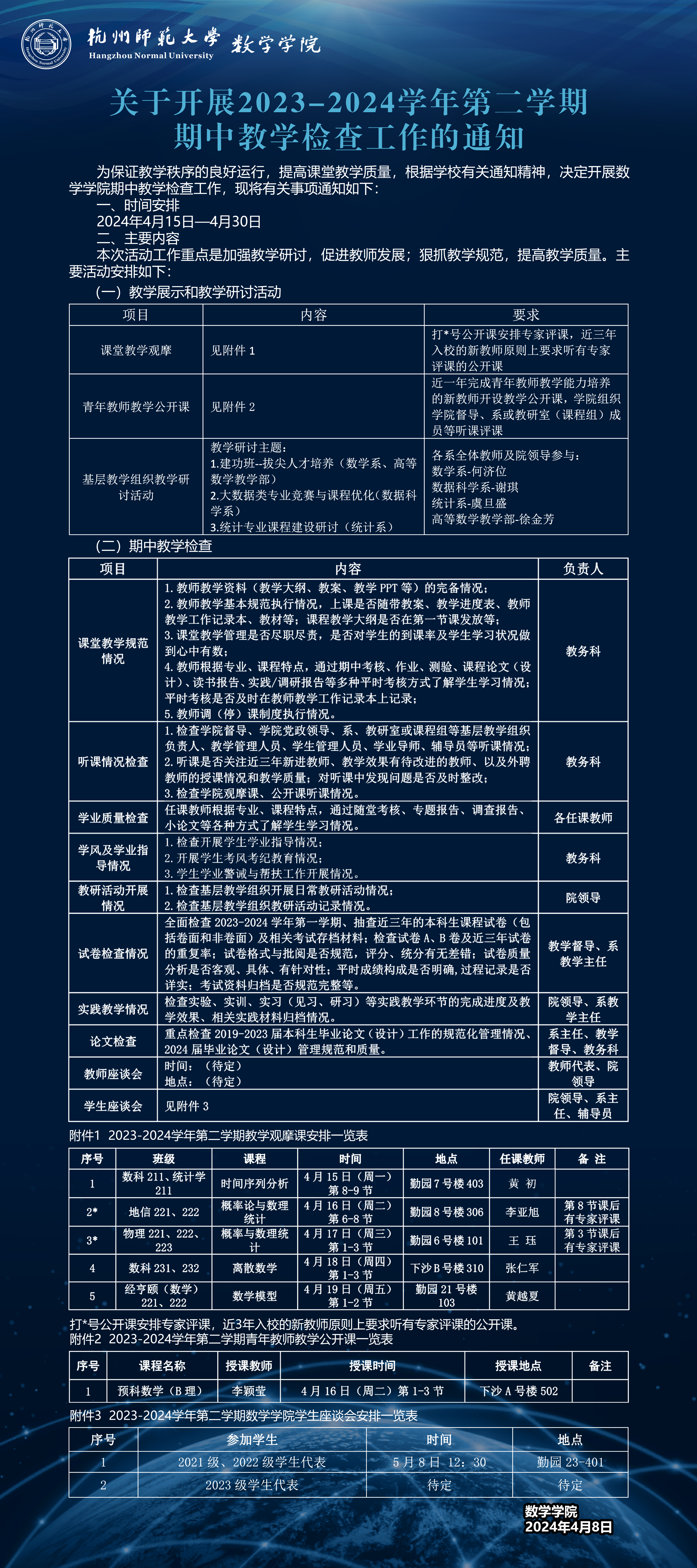 蜜桃视频 2023-2024学年第二学期期中教学检查安排