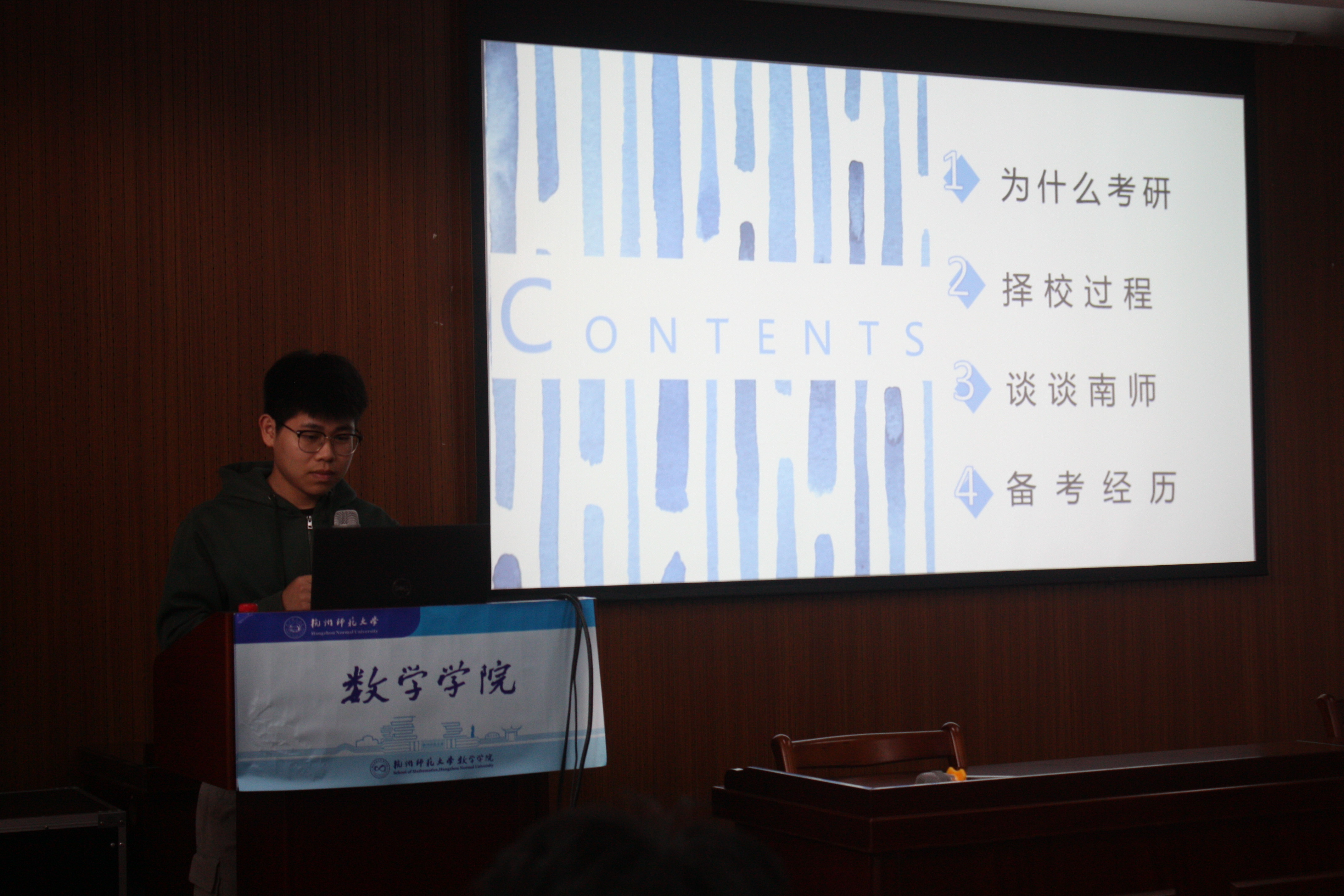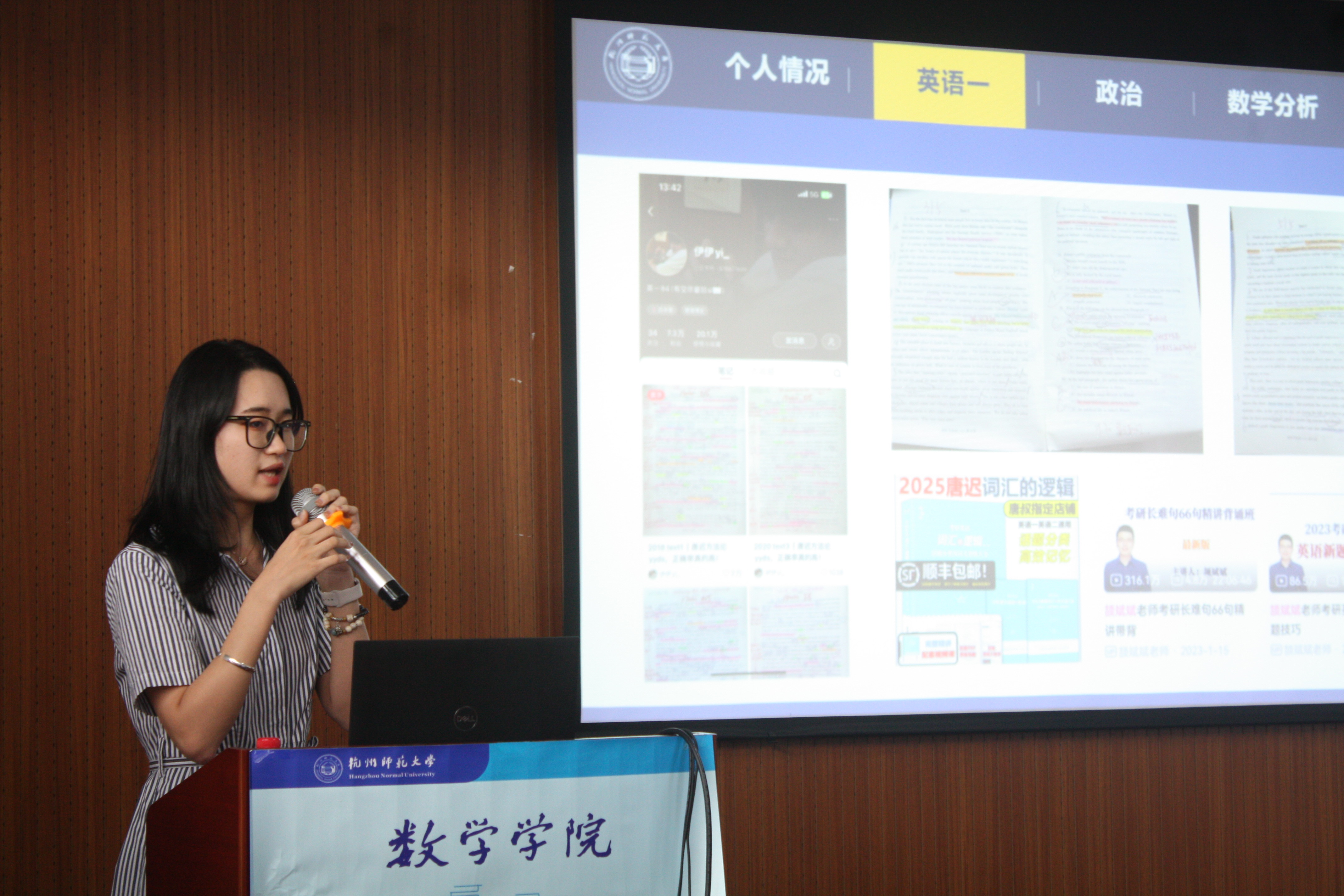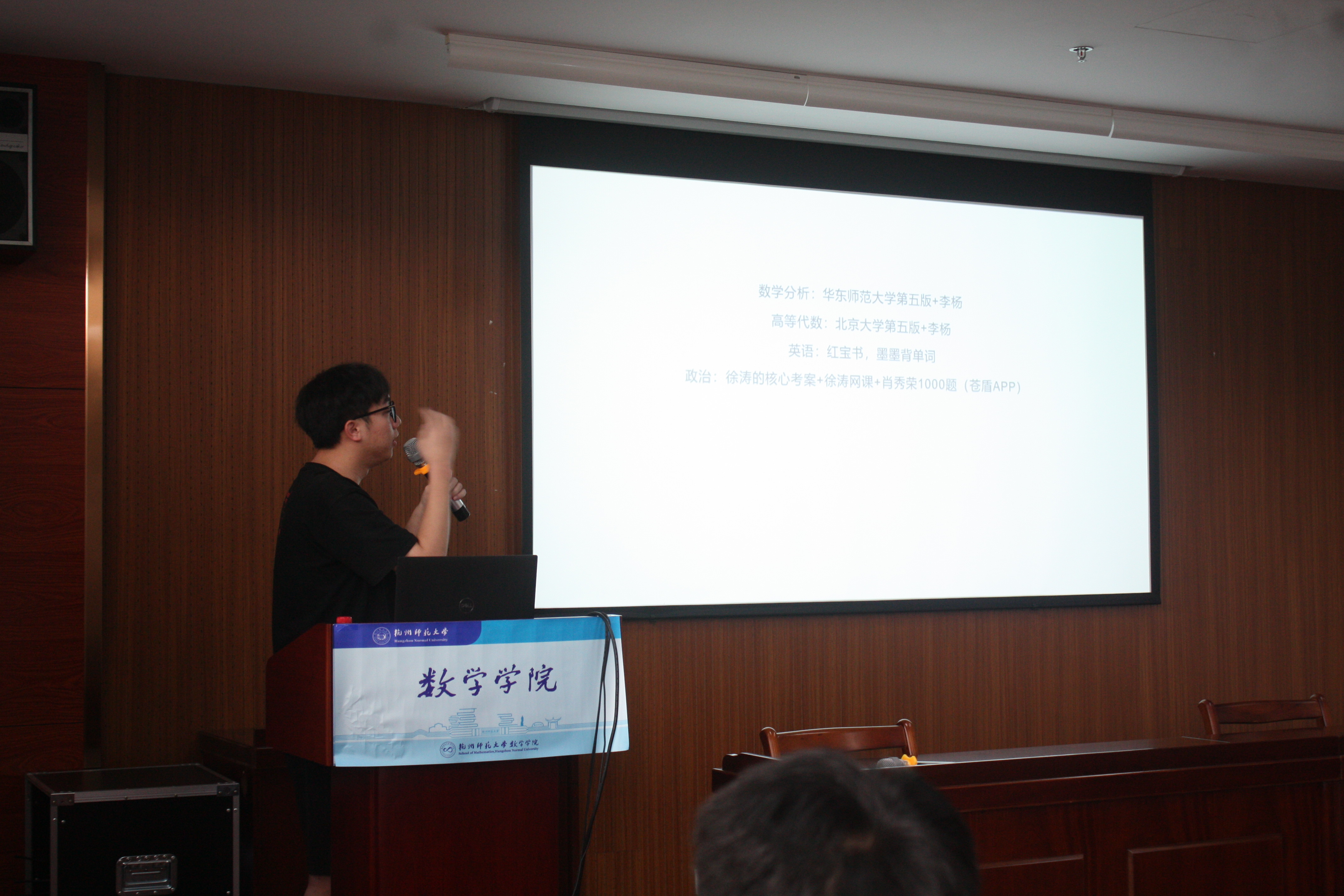 第二位进行分享的是上岸浙江师范大学的许伟达,他给同学们分享了浙师大数学学硕考研交流群,帮助同学们打破考研期间的信息差。同时,他也介绍了自己的时间安排,并鼓励同学们在备战期间要坚持住,努力克服各种困难,在条件允许的情况下,可以找一个考研搭子和自己相互监督相互鼓励相互成就。