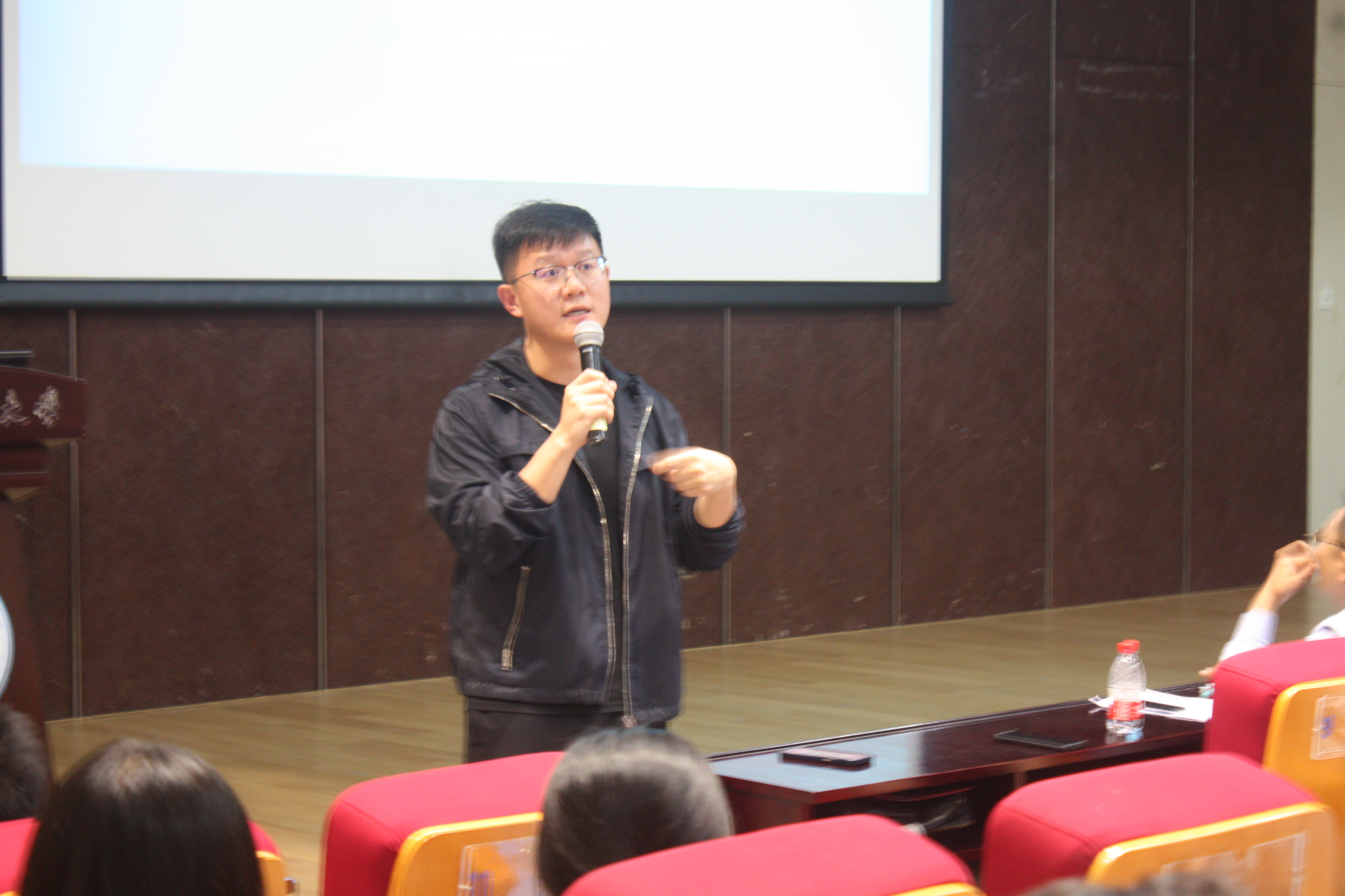 第四项议程由李兴波副总经理与同学们分享了他工作15年的心得体会,从自身的工作经历、就业选择、面试和笔试技巧等多个角度介绍自己的亲身体验。他以一名企业家和学长的身份,娓娓道来,给予了同学们很多良好的建议:如在工作中需要我们保持良好的学习习惯,要有承担责任的勇气,健康的体魄。在分享的最后,他真诚地表达了对同学们的祝愿,希望同学们能够塑造更好的自己。