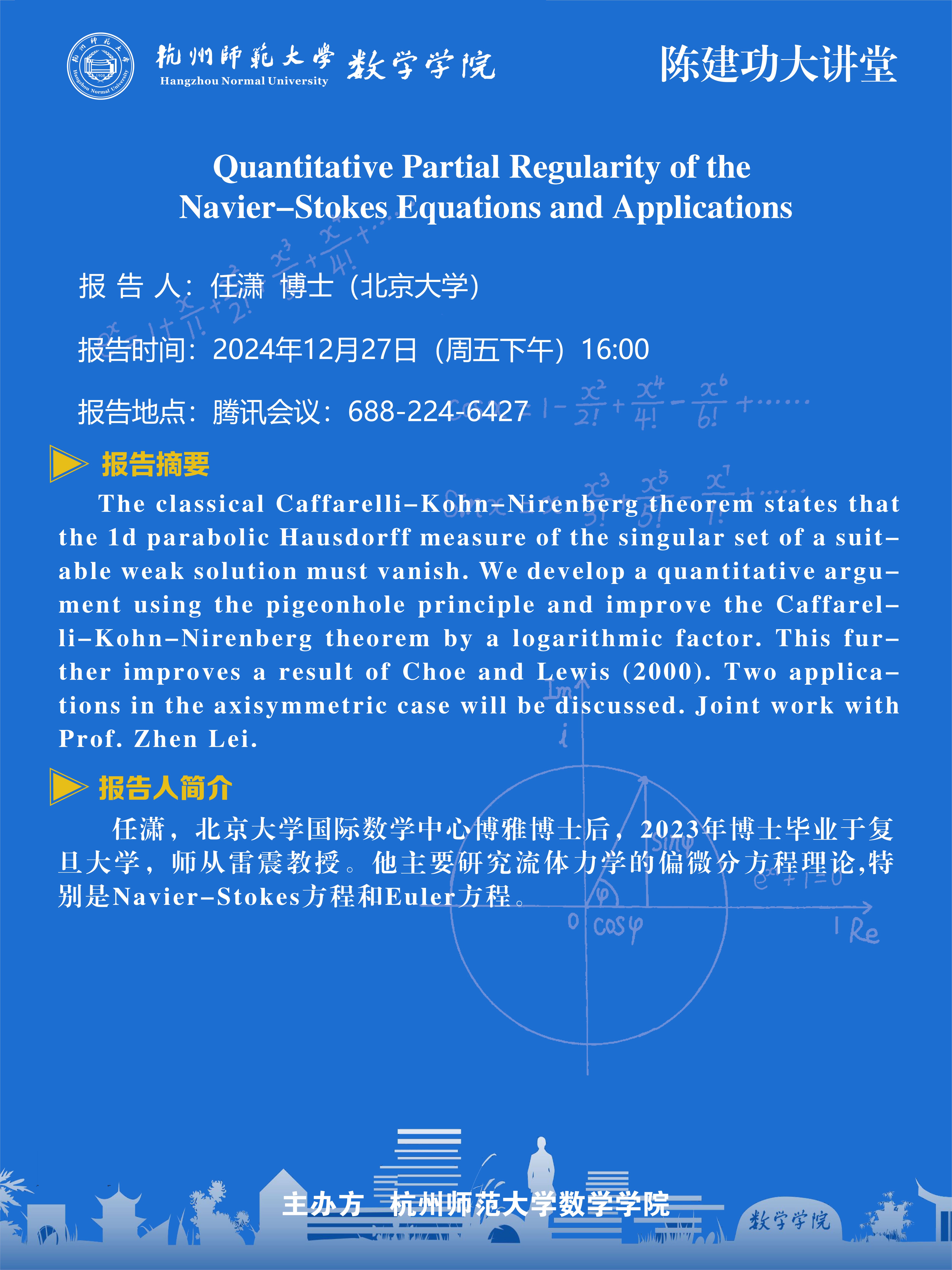 陈建功大讲堂(2024-195):Quantitative Partial Regularity of the Navier-Stokes Equations and Applications