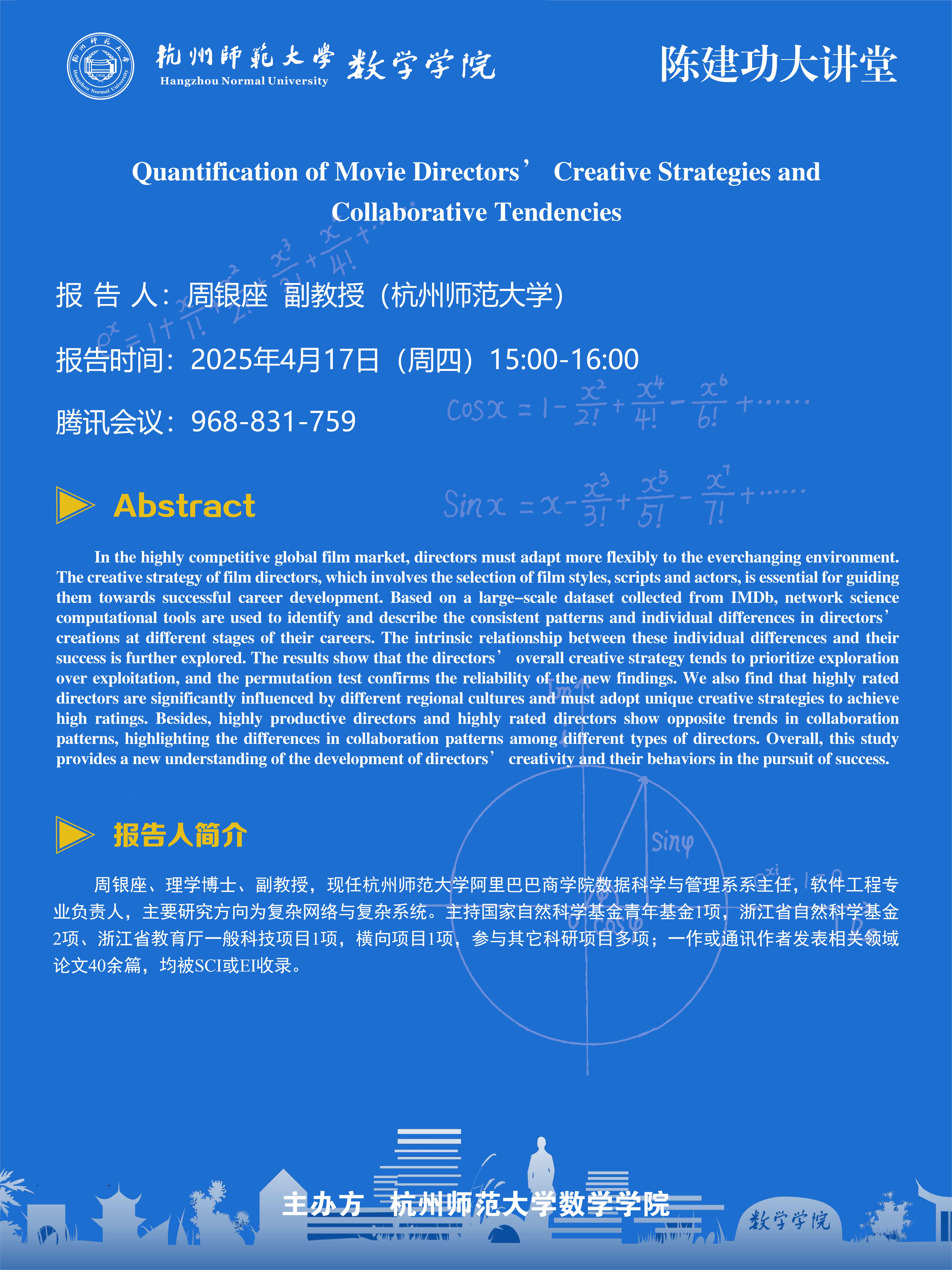 陈建功大讲堂(2025-20):Quantification of Movie Directors’ Creative Strategies and Collaborative Tendencies