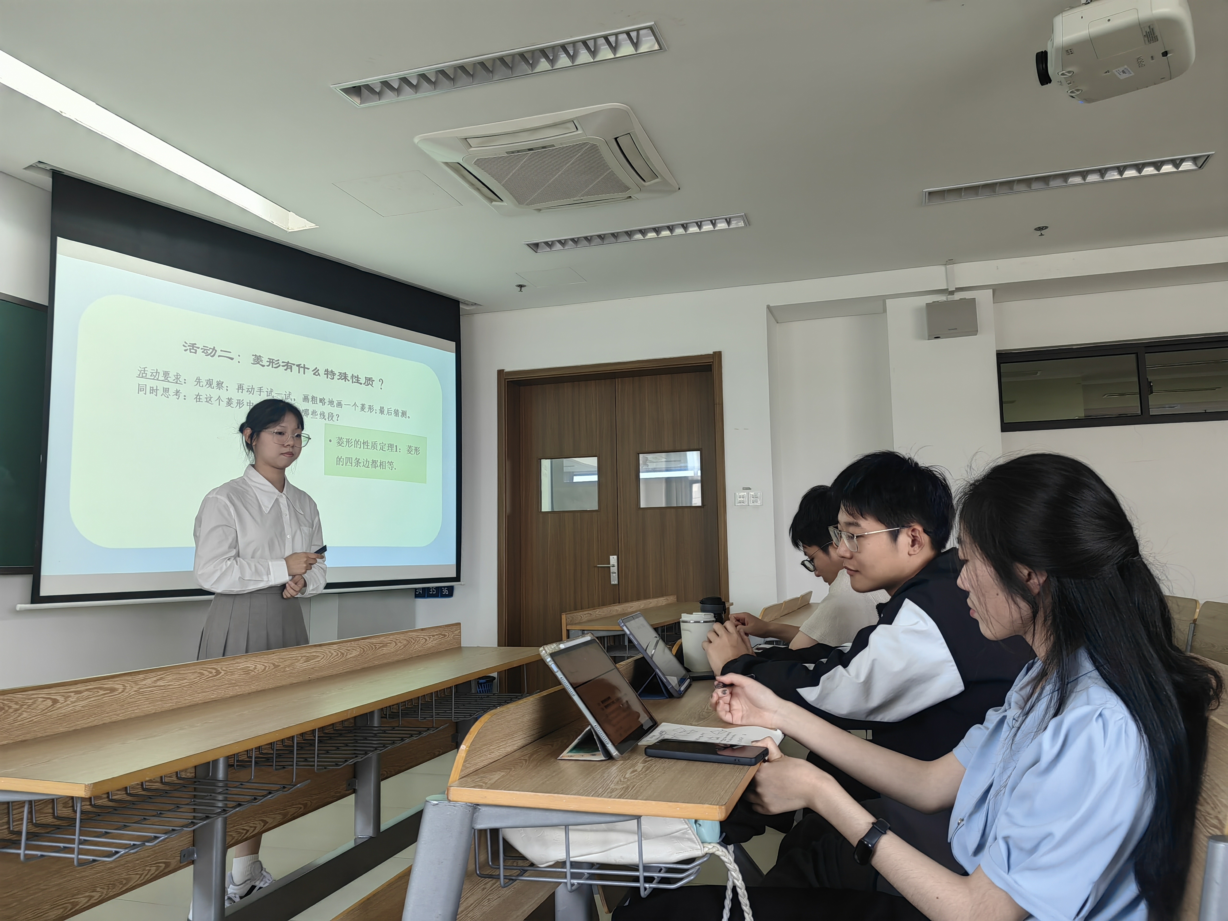 4月27日,在勤园8号教学楼进行了大赛的决赛。决赛邀请了 蜜桃视频 副院长虞旦盛、数学系副系主任李彦霖、余杭区教育发展研究学院教育科研中心副主任高建成、拱墅区教育研究院戴秀梅、杭州文晖实验学校教学管理中心主任王生飞、仓前中学王利庆担任评委。在比赛现场,选手们各展风采,将课堂化作知识的乐园,展现出未来教师的卓越风采。