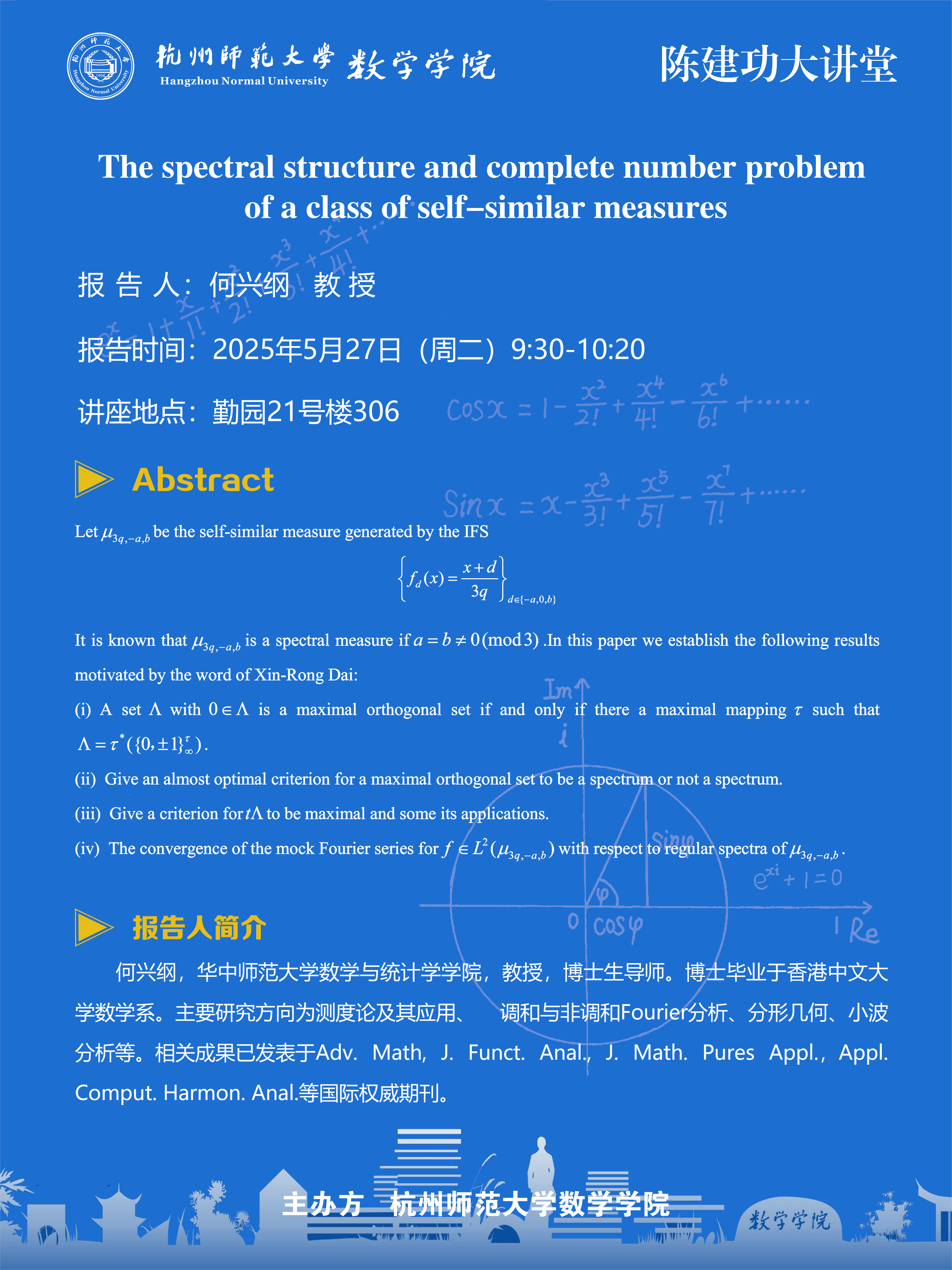 陈建功大讲堂(2025-41):The spectral structure and complete number problem of a class of self-similar measures