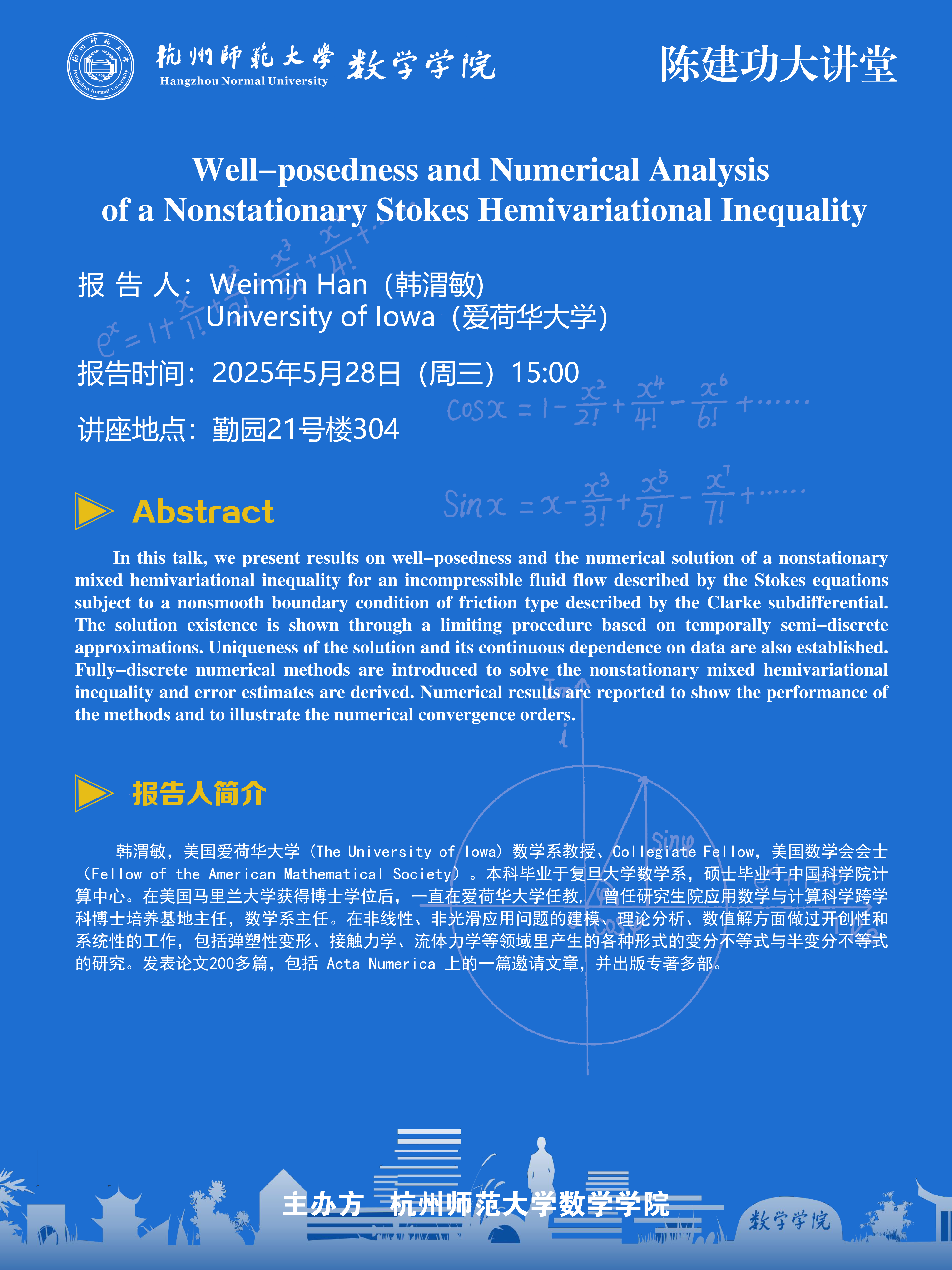 陈建功大讲堂(2025-43):Well-posedness and Numerical Analysis of a Nonstationary Stokes Hemivariational Inequality