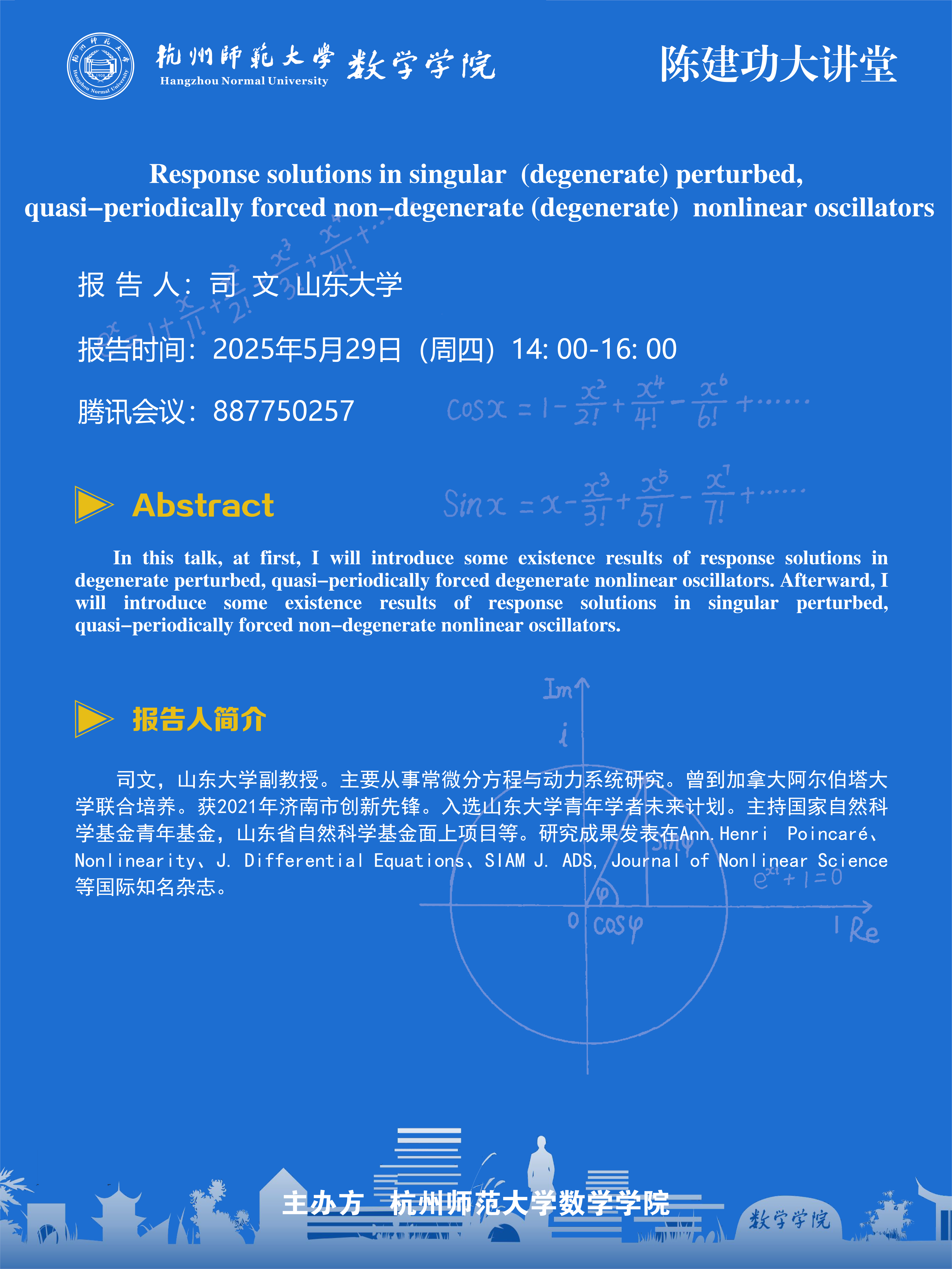 陈建功大讲堂(2025-45):Response solutions in singular (degenerate) perturbed, quasi-periodically forced non-degenerate (degenerate) nonlinear oscillators