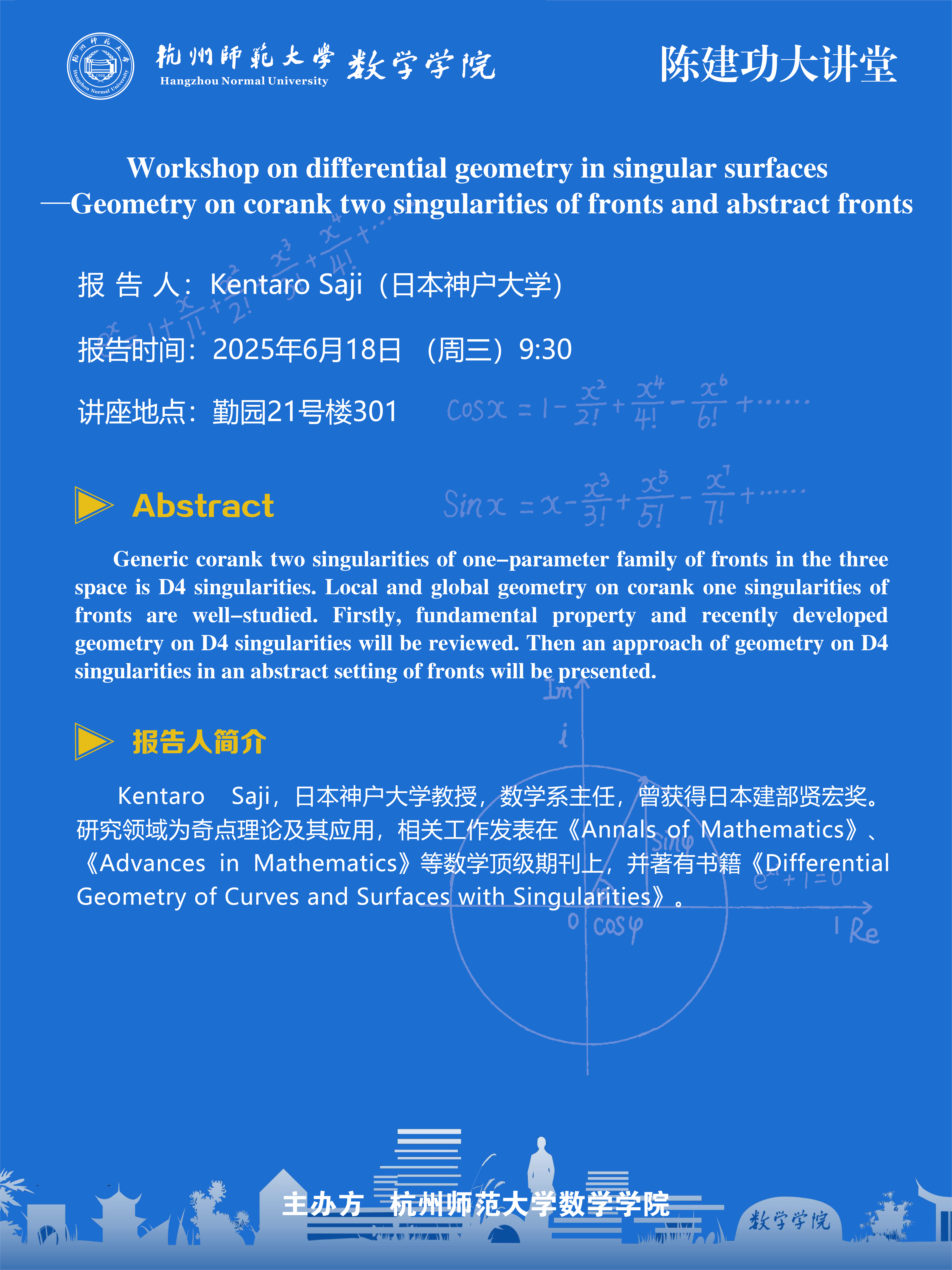 陈建功大讲堂(2025-54):Workshop on differential geometry in singular surfaces—Deformations of singularities and their geometry