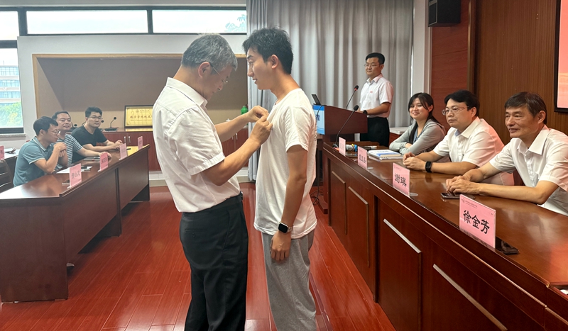 校徽是学校的象征和标识,也是传承学术精神的纽带。学院党委书记徐金芳老师为新生代表庄重佩戴校徽。徐书记寄语全体新同学,“这枚校徽承载着杭师大的百年文脉,从现在开始,我们将有一个共同的印记:杭师大数学人。希望你们尊重身边的老师、爱惜学院的口碑、珍重学院的荣誉。”