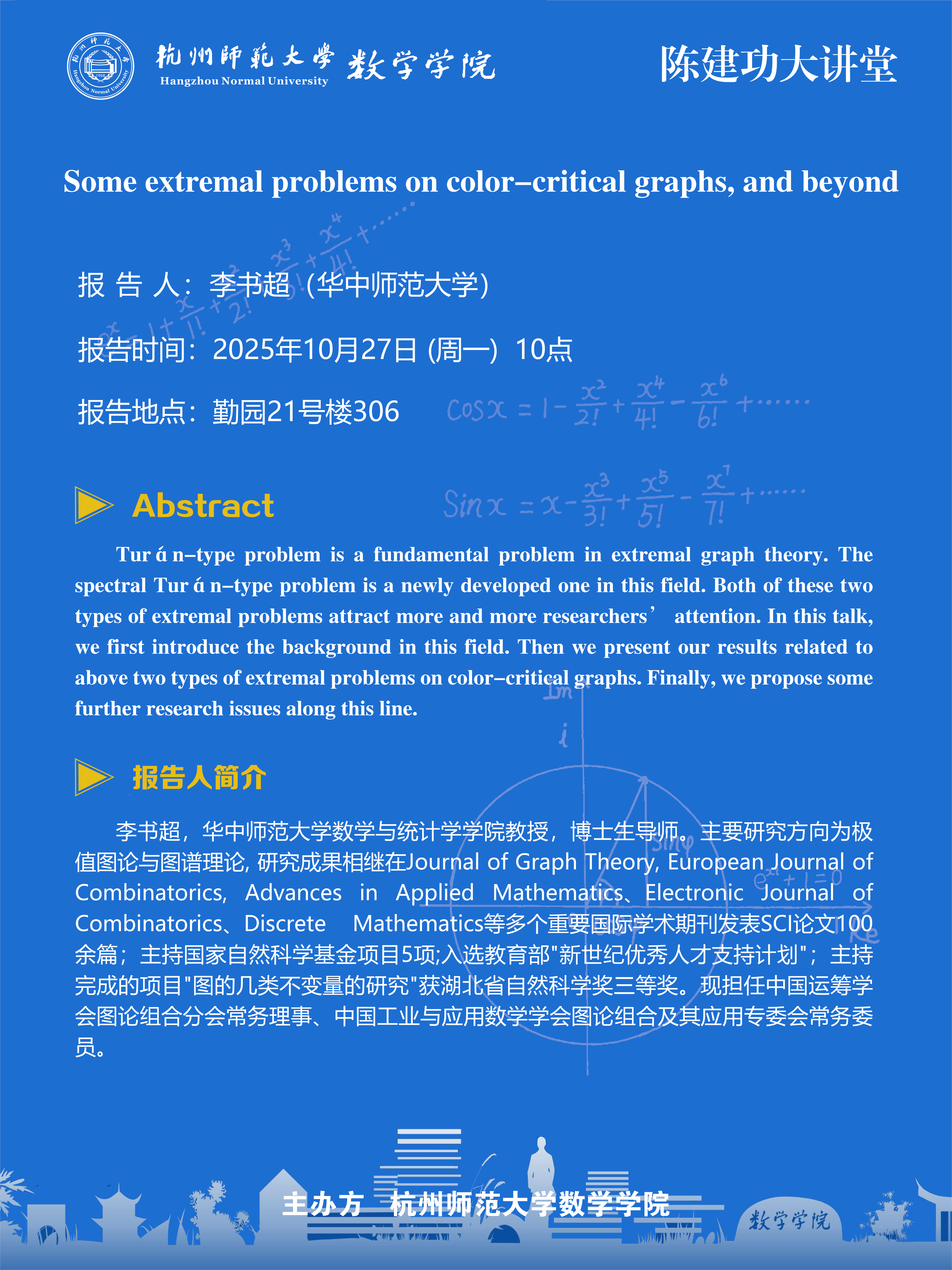 陈建功大讲堂(2025-98):Some extremal problems on color-critical graphs, and beyond