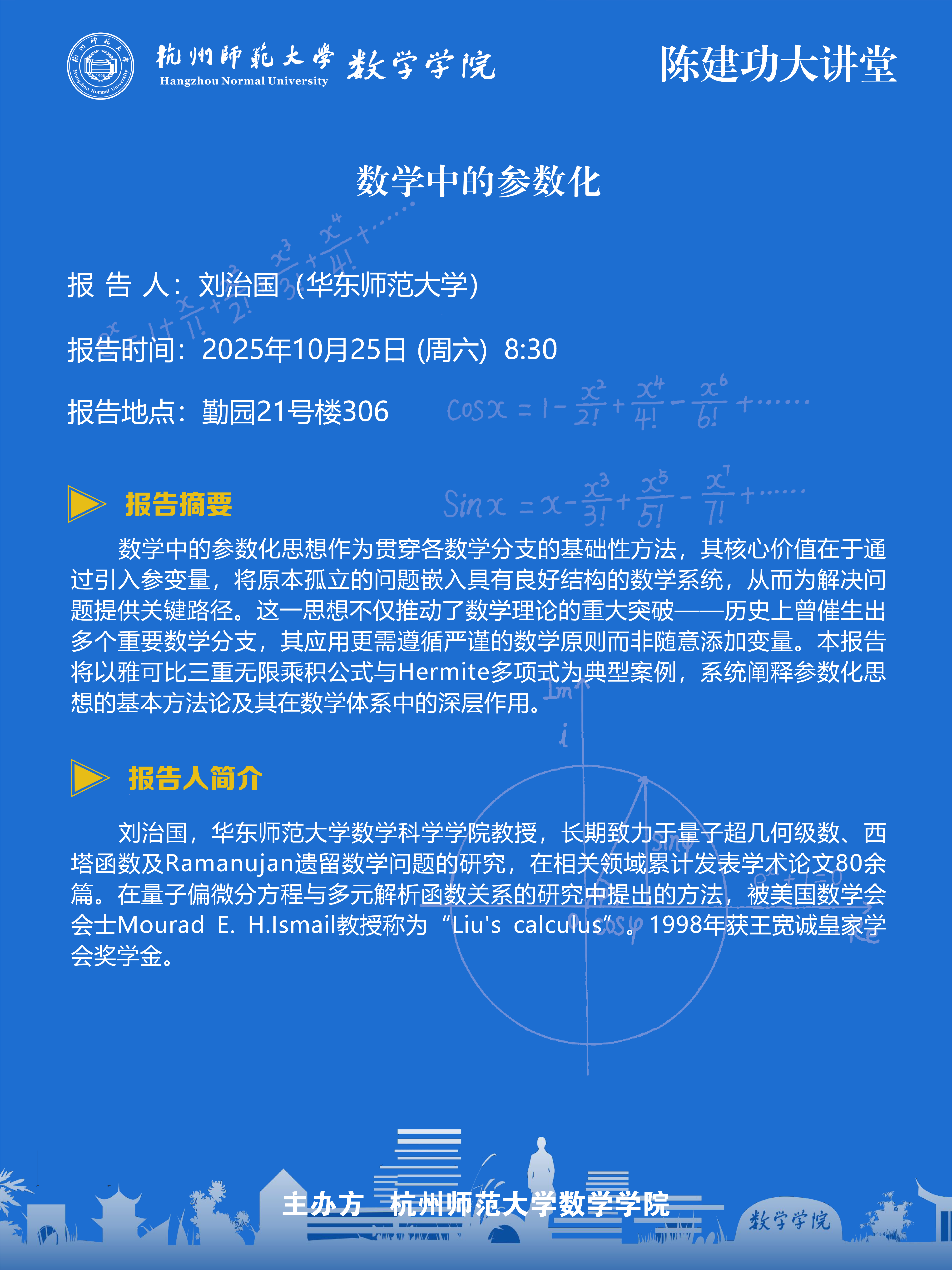 陈建功大讲堂(2025-101):数学中的参数化