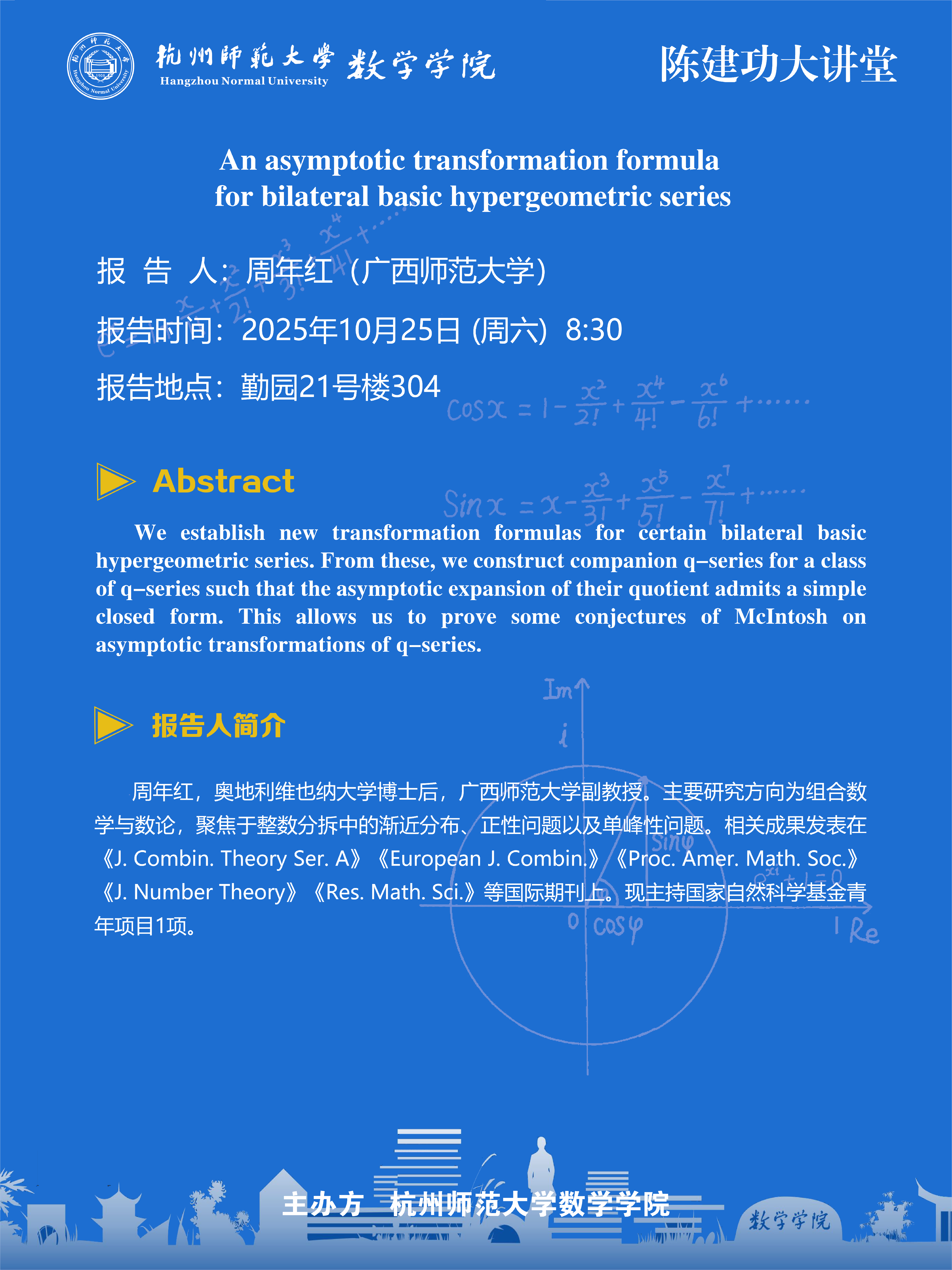 陈建功大讲堂(2025-103):An asymptotic transformation formula for bilateral basic hypergeometric series