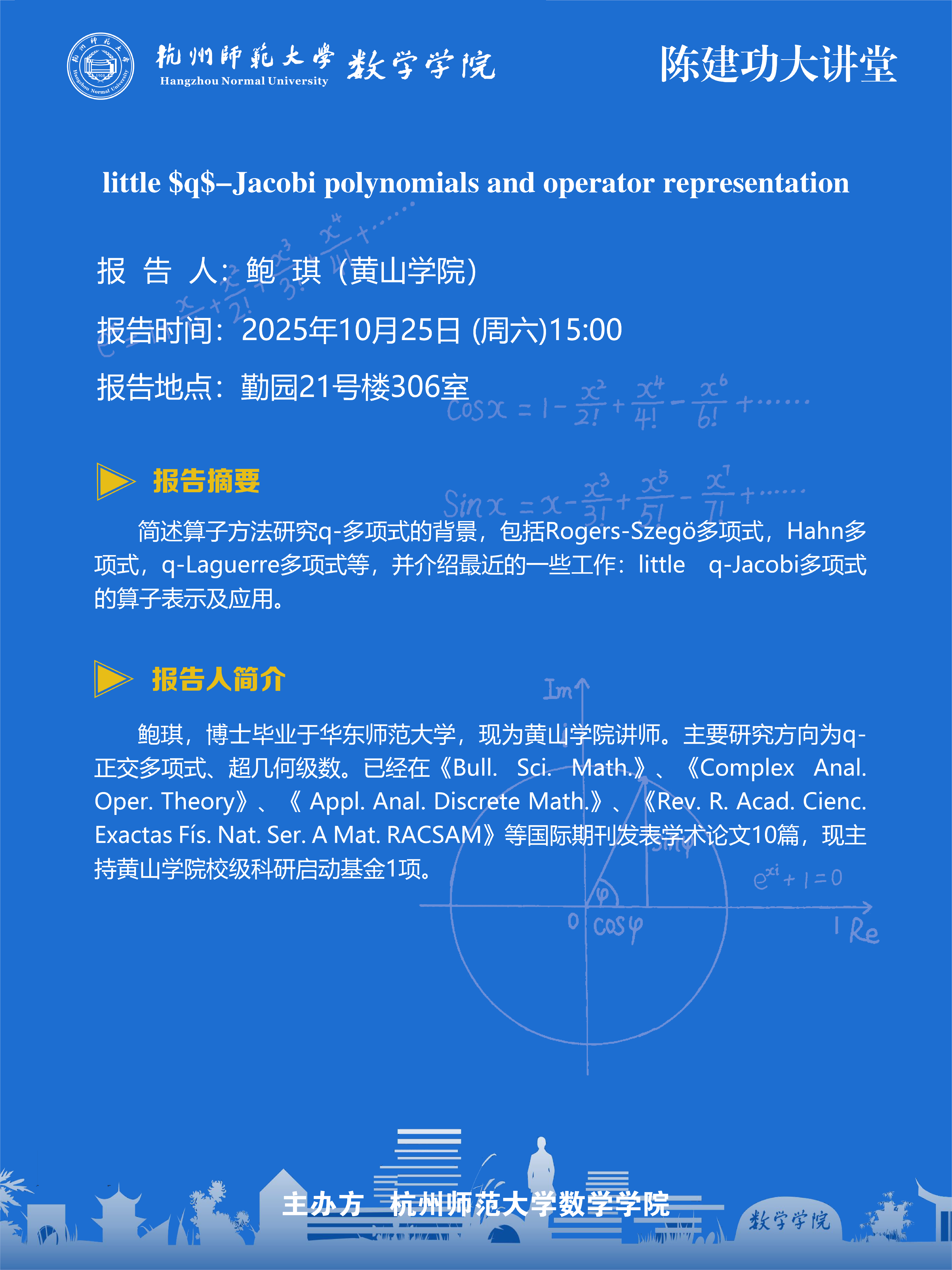 陈建功大讲堂(2025-107):little $q$-Jacobi polynomials and operator representation