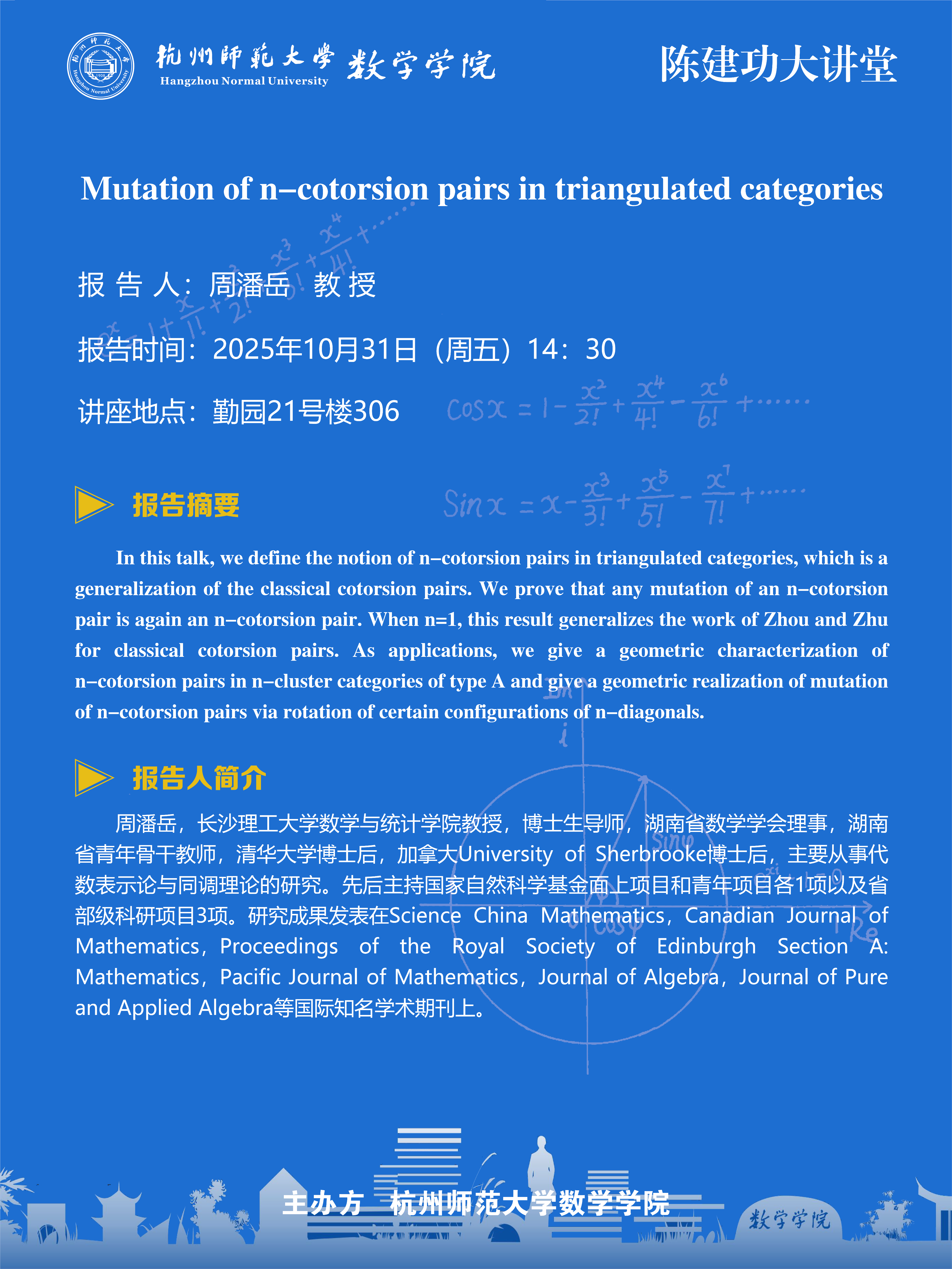 陈建功大讲堂(2025-109):Mutation of n-cotorsion pairs in triangulated categories