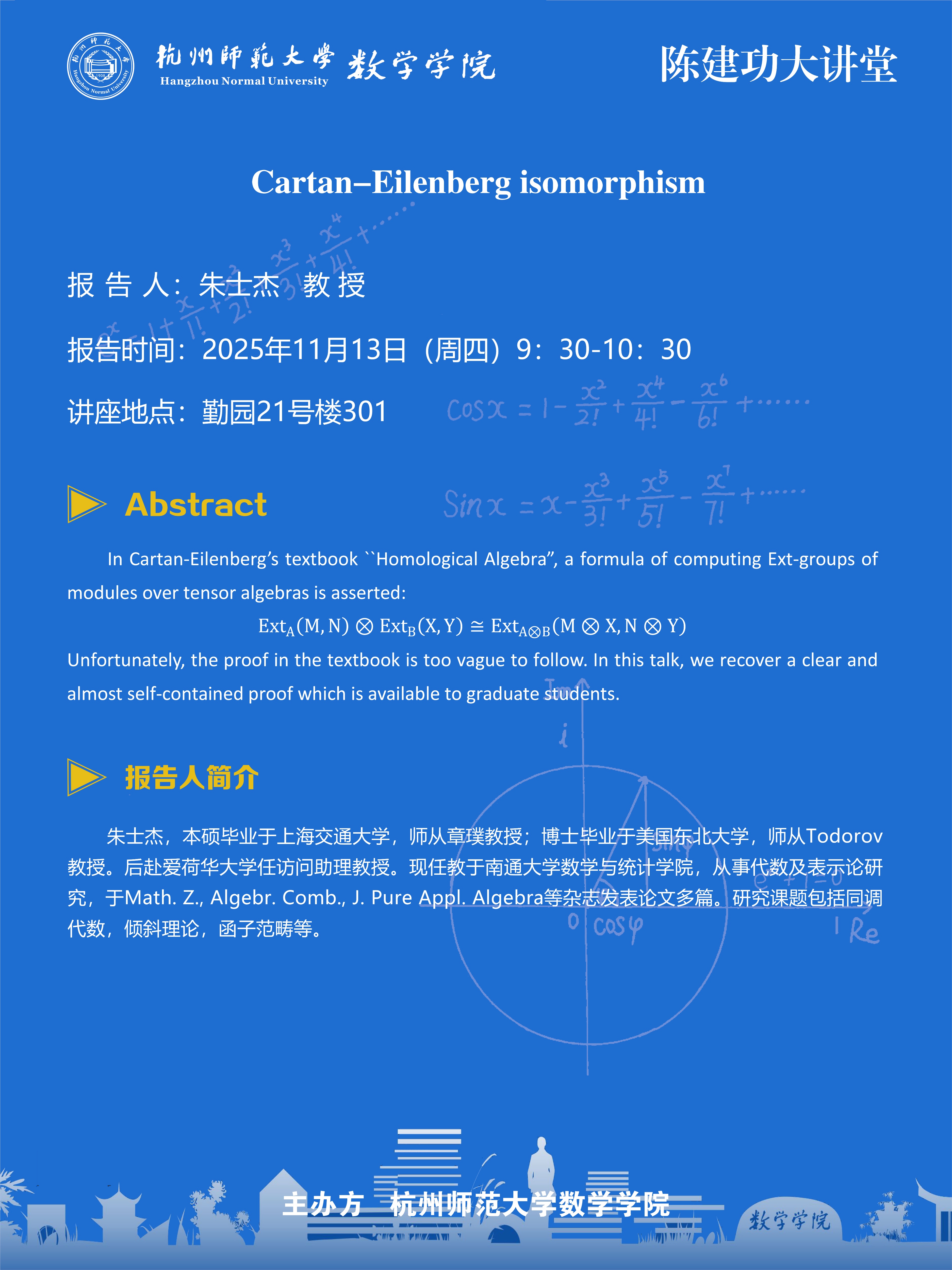 陈建功大讲堂(2025-120):Cartan-Eilenberg isomorphism
