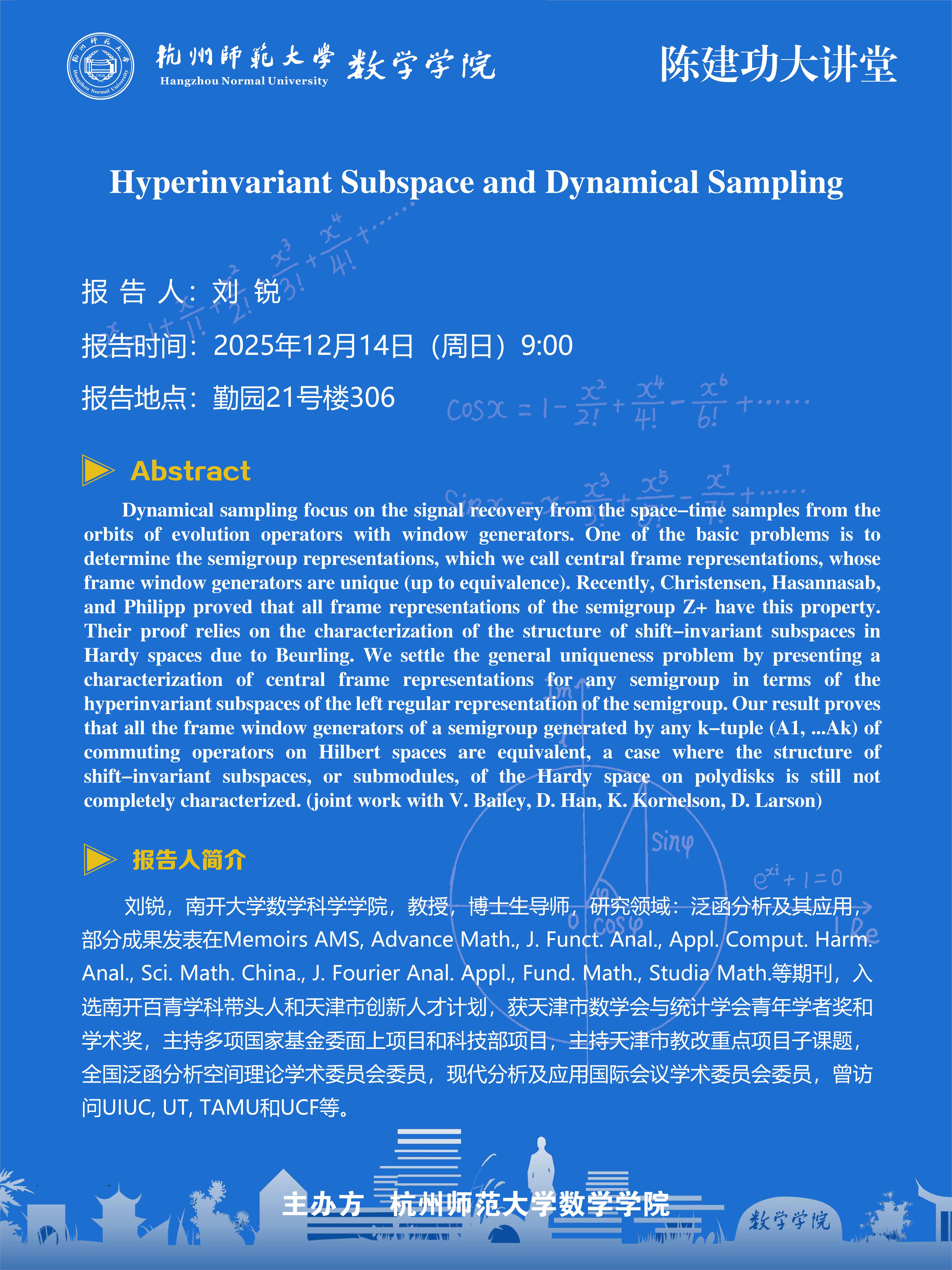 陈建功大讲堂(2025-155):Hyperinvariant Subspace and Dynamical Sampling