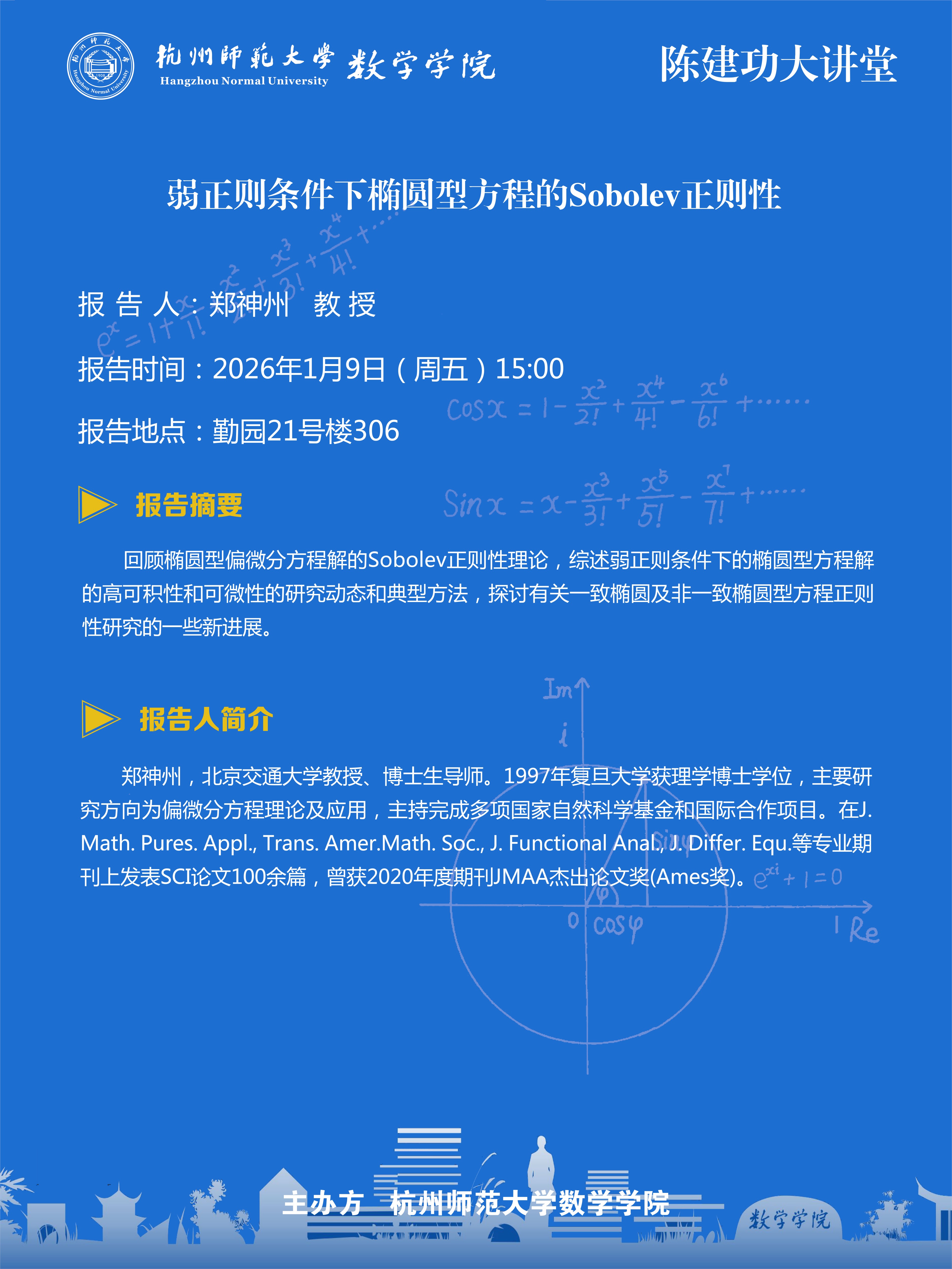陈建功大讲堂(2026-3):弱正则条件下椭圆型方程的Sobolev正则性